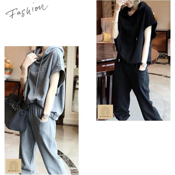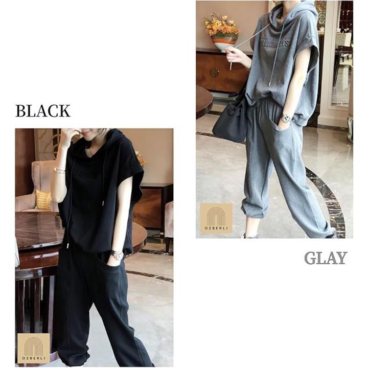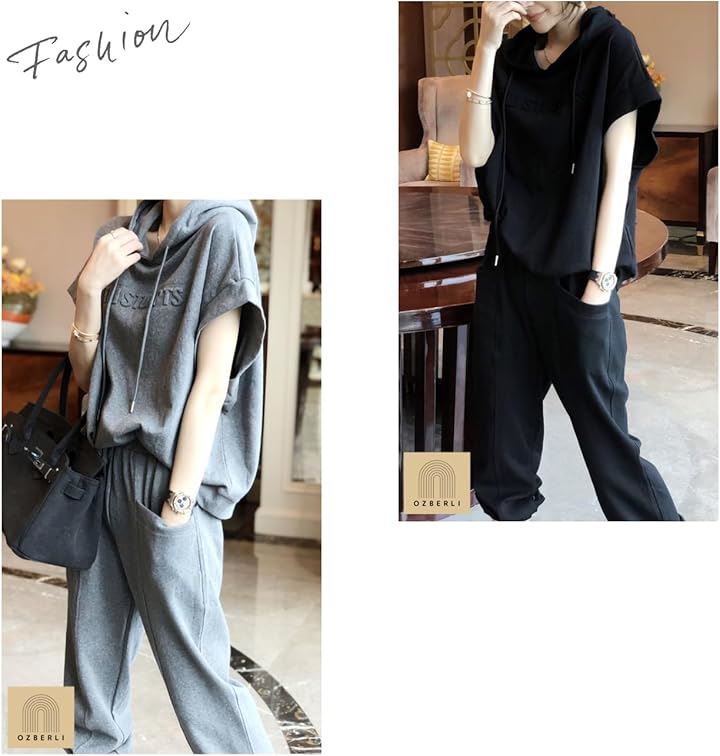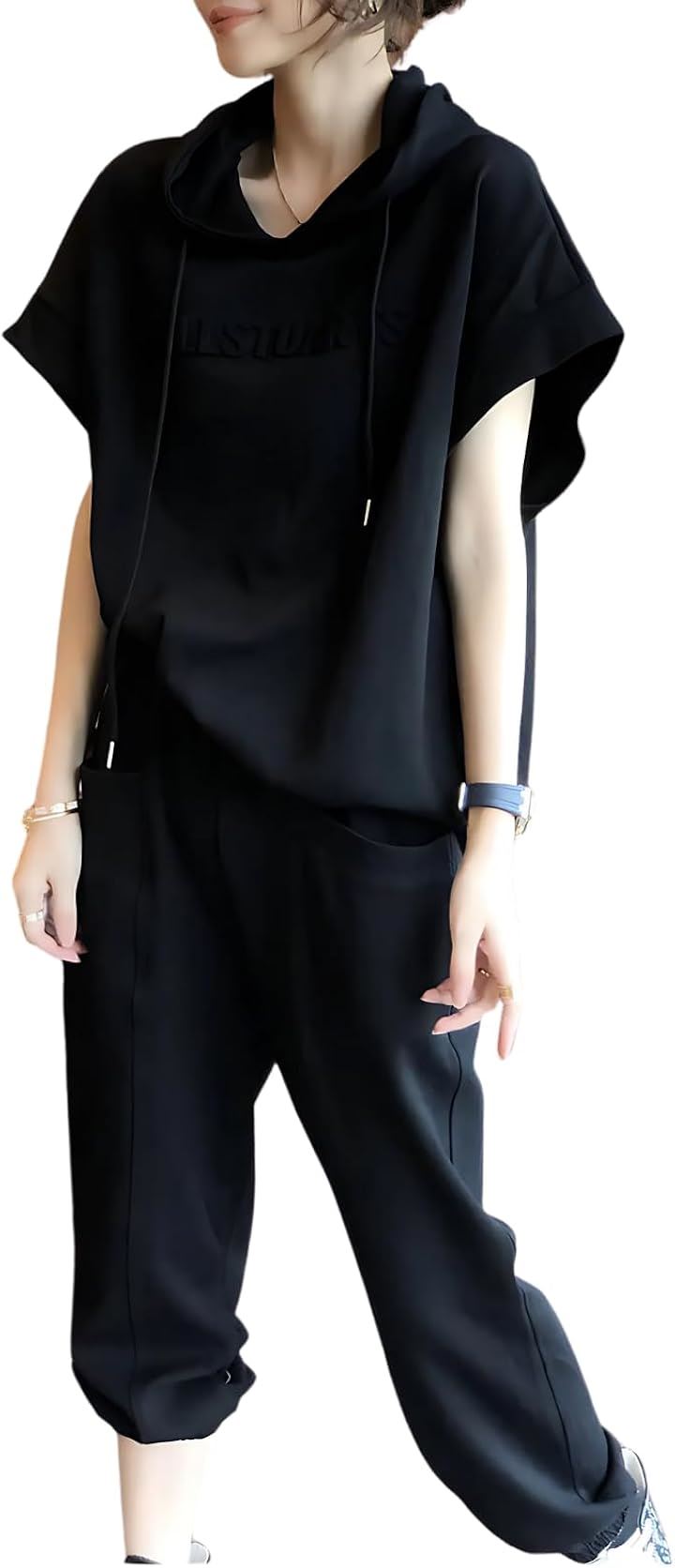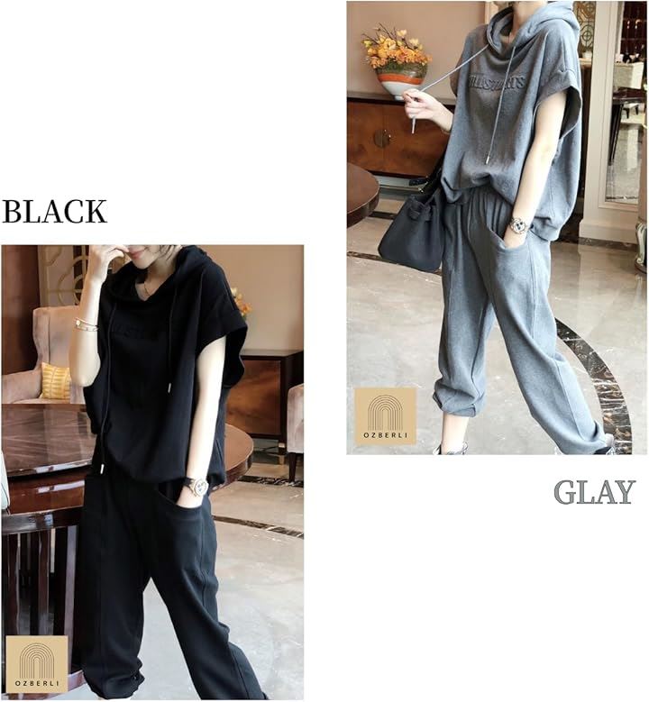 レディース セットアップ スウェット 上下 薄手 半袖 トップス フード パーカー 七分 丈 パンツ エンボス ロゴ 春 夏 秋 部屋着 ルームウェア ジャージ 半そで