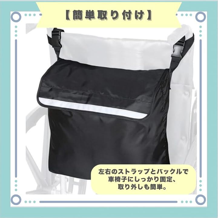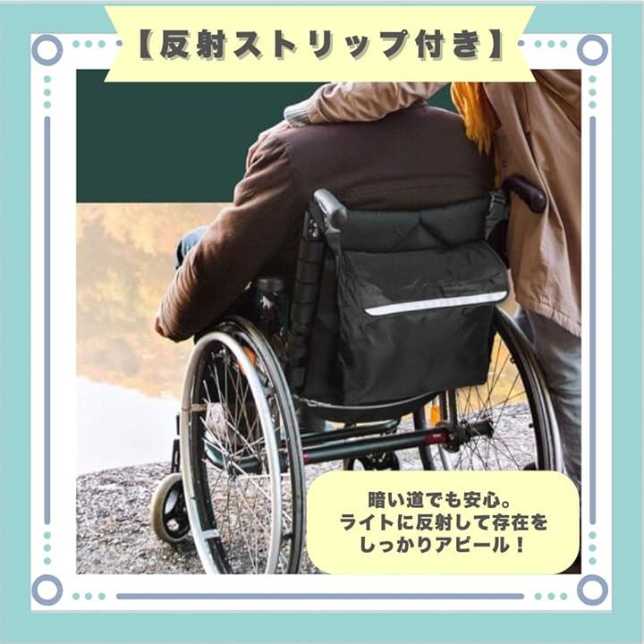 車いす 椅子 収納バッグ 小物入れ 荷物 大容量 背面 介護 高齢者 反射ライン付き