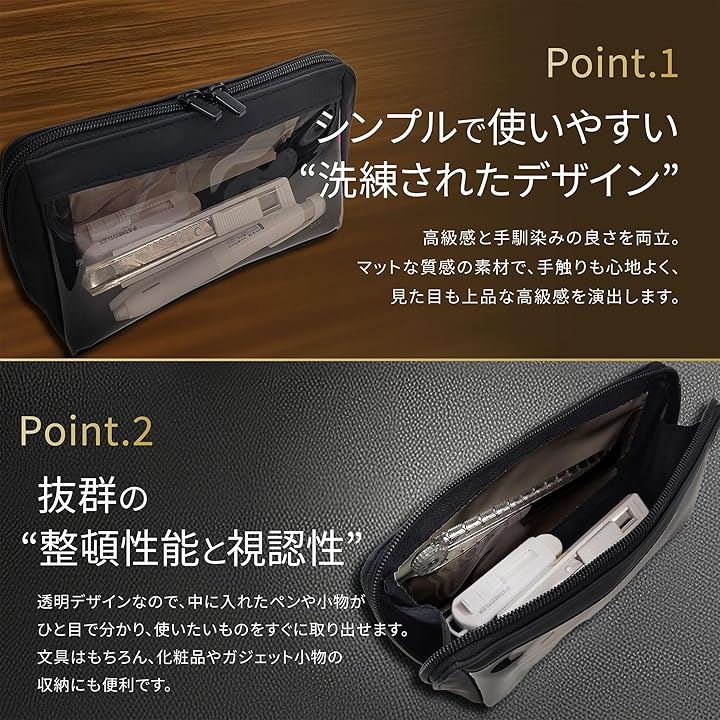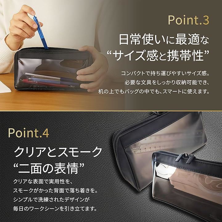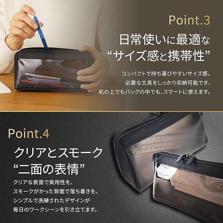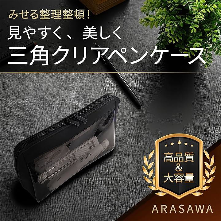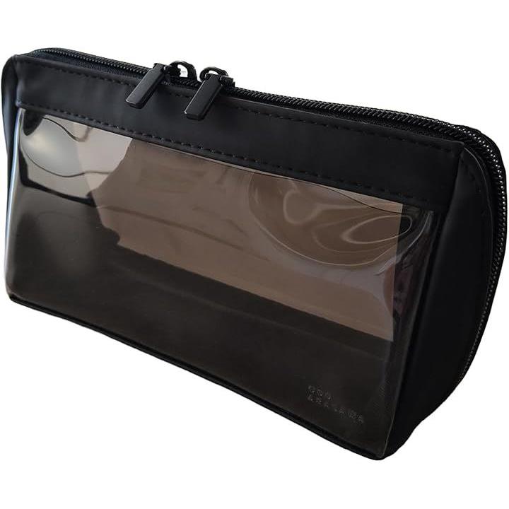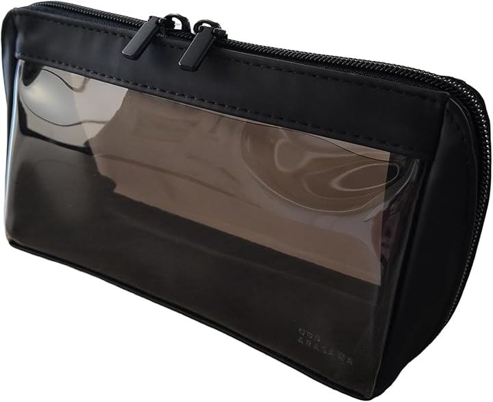 三角クリアペンケース ペンポーチ 化粧ポーチ 収納ポーチ バッグinバッグ 大容量 筆箱 シンプル おしゃれ 透明 中が見える スモーク ブラック 防水 学生 社会人