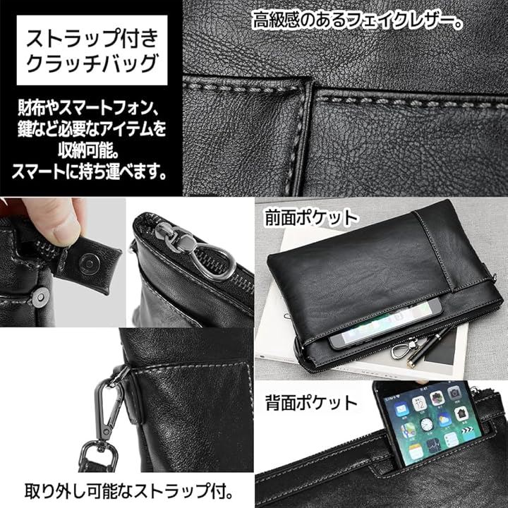クラッチバッグ メンズ 普段使い セカンドバッグ 冠婚葬祭 ストラップ付き