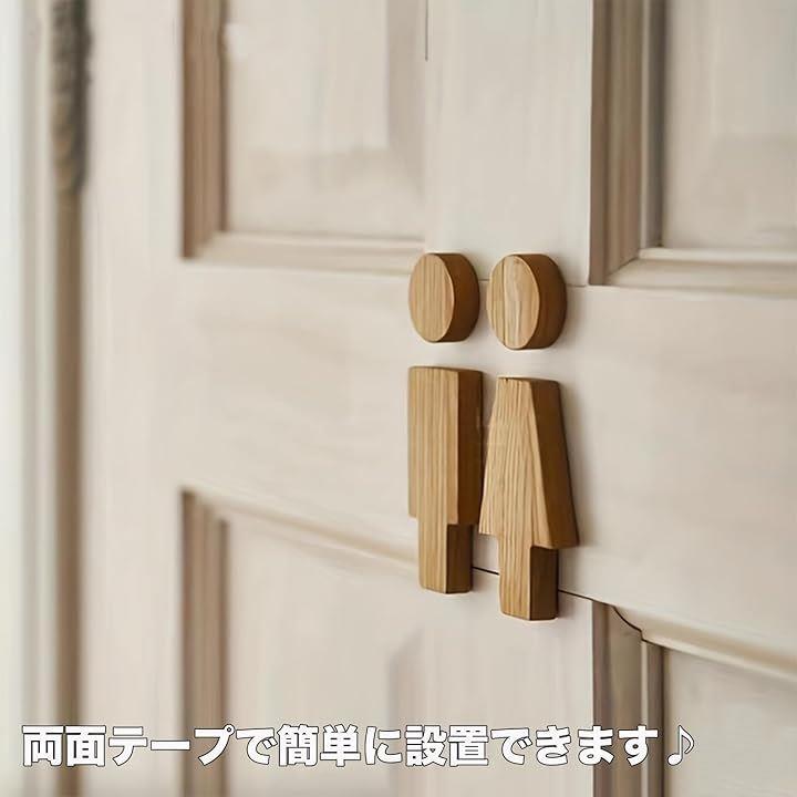 トイレ マーク 木製 2個セット 男女 おしゃれ かわいい シンプル ドア サイン プレート ウッド お手洗い 化粧室 ピクトグラム カフェ風 自宅 店舗 オフィス