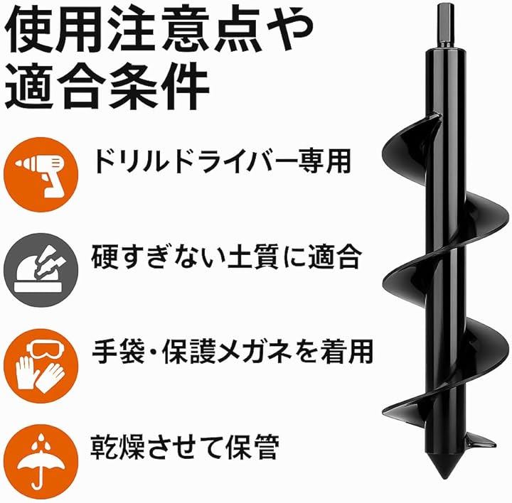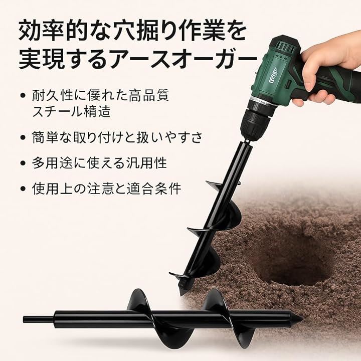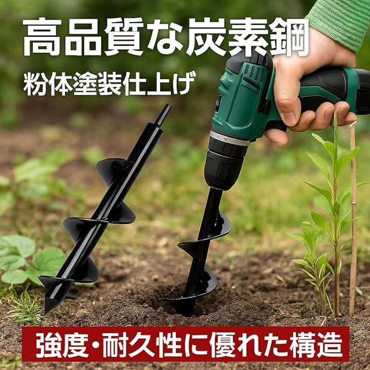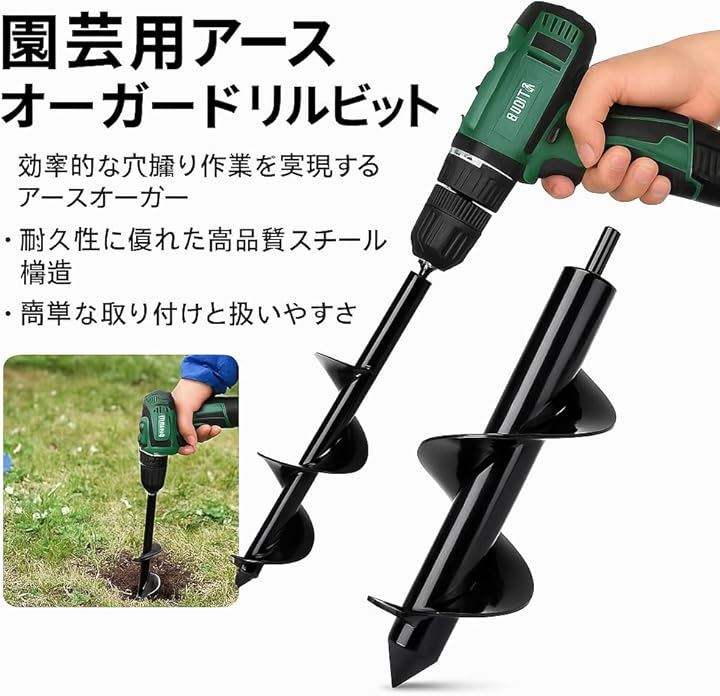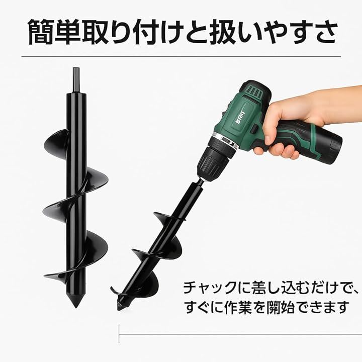 本製品は、園芸や家庭菜園での穴掘り作業をより簡単かつ効率的に行うために設計された、ドリルドライバー専用アースオーガー です。