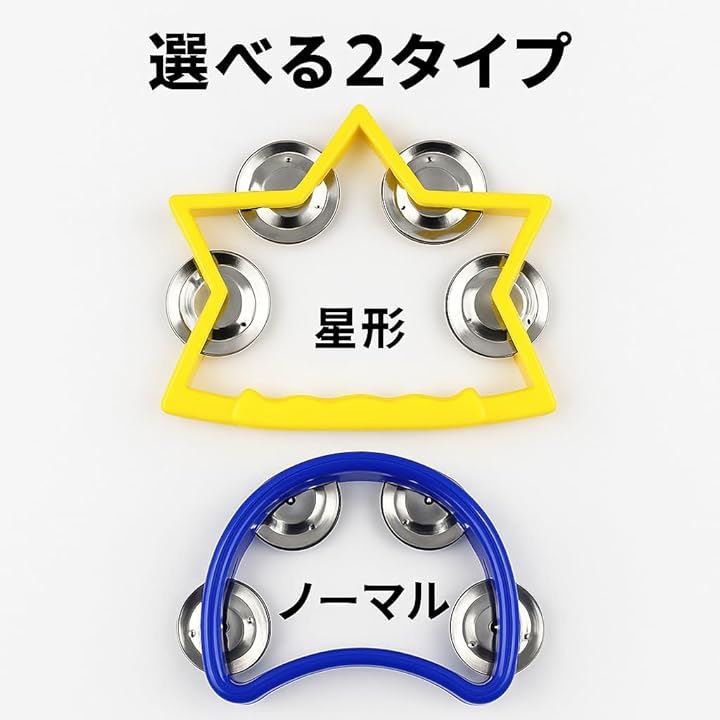 タンバリンは「ノーマルタイプ」と「星型タイプ」から選べる仕様で、音やデザインの違いを楽しめます。