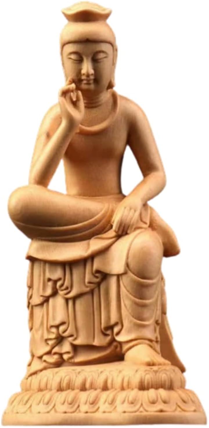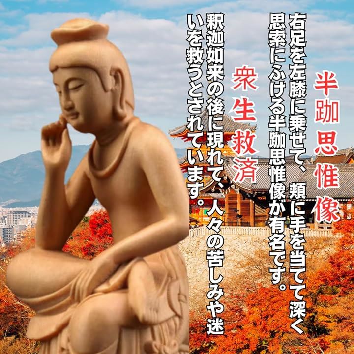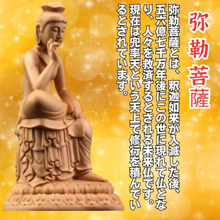 仏像 弥勒菩薩 半跏思惟像 木彫り 仏壇仏像 置物 桧木製 法相宗 悩み 祈る 厄除け 八角台座 大仏様 御利益 功徳