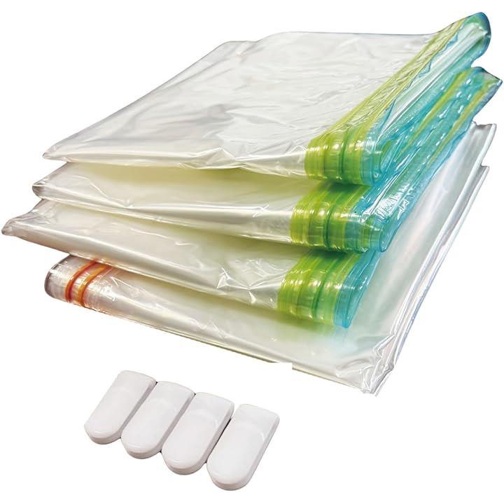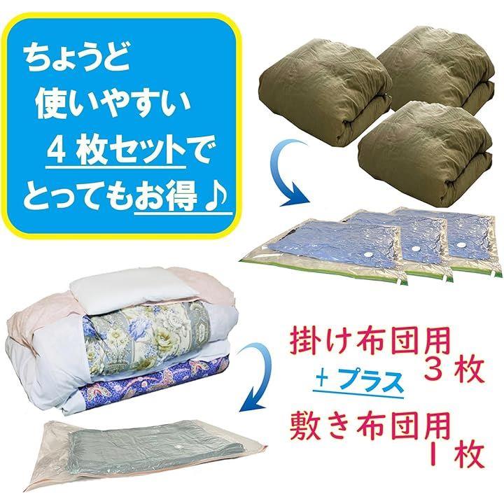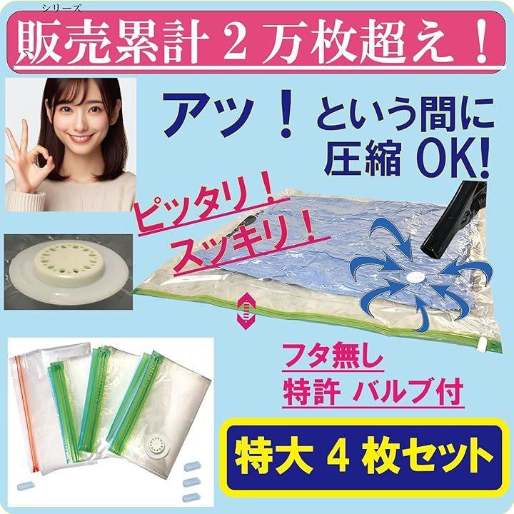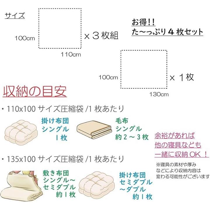 布団圧縮袋 特大 4枚組 特許 空気が戻らない スピードバルブ付き 掛け布団用サイズ 3枚+敷き布団用サイズ 1枚 カンタン/スピード圧縮 二重ファスナーで更に安心