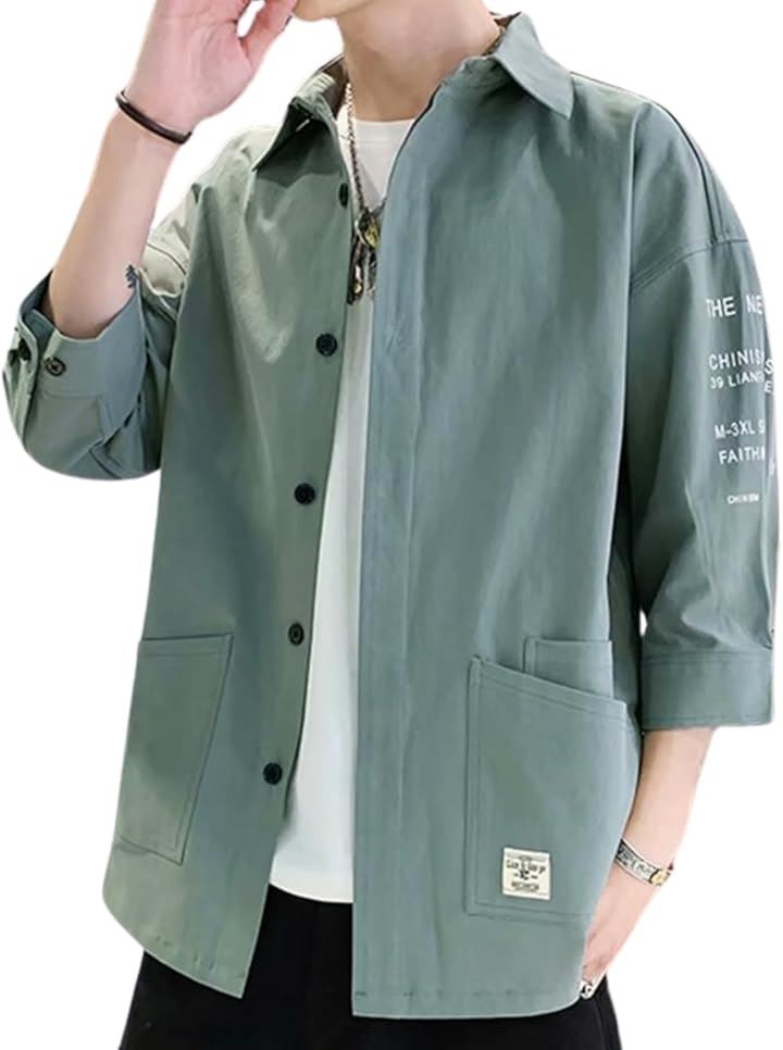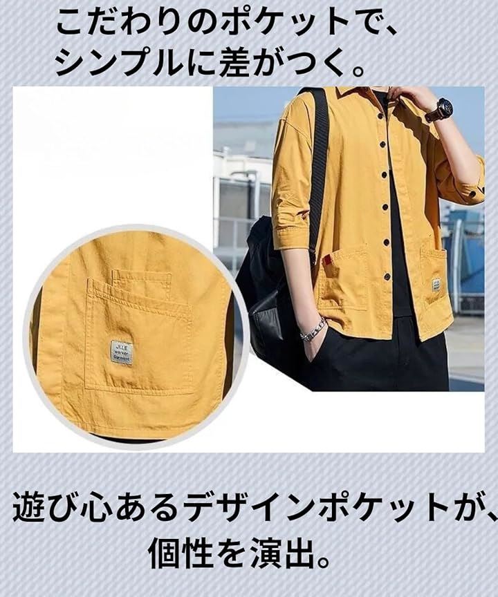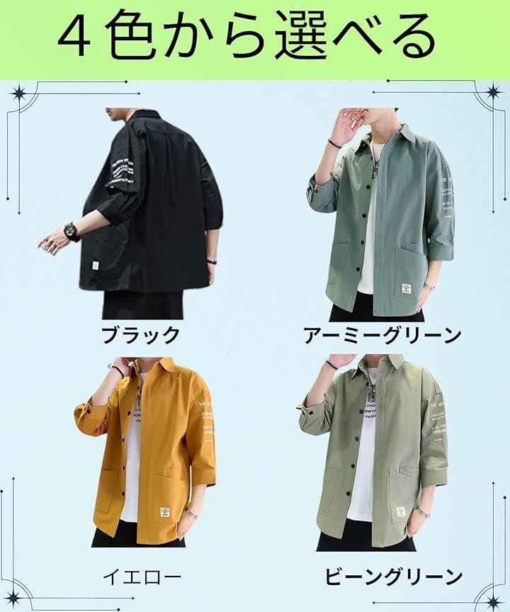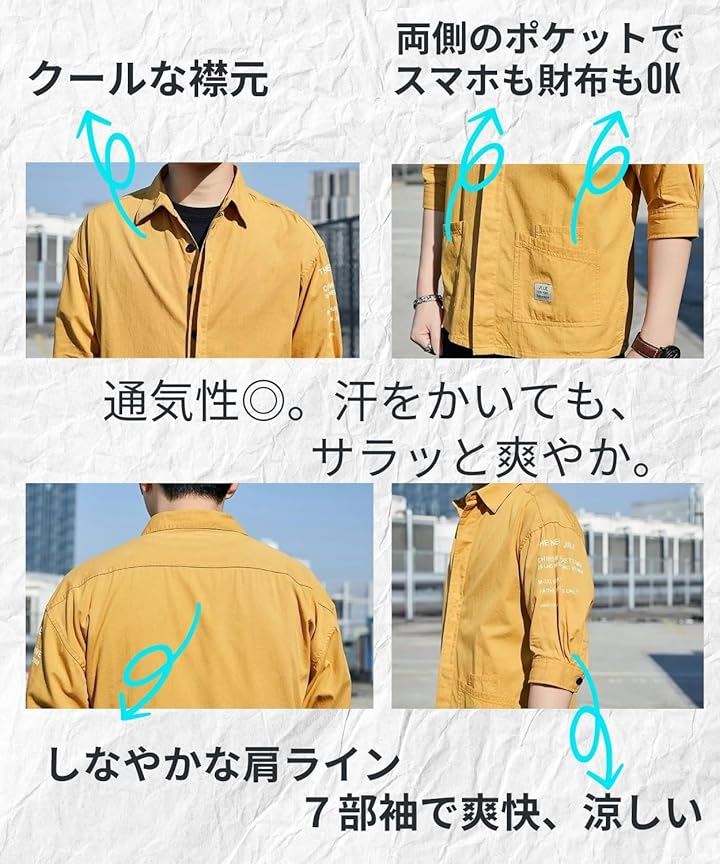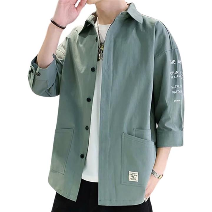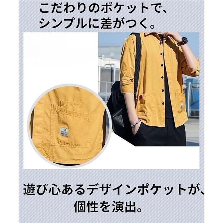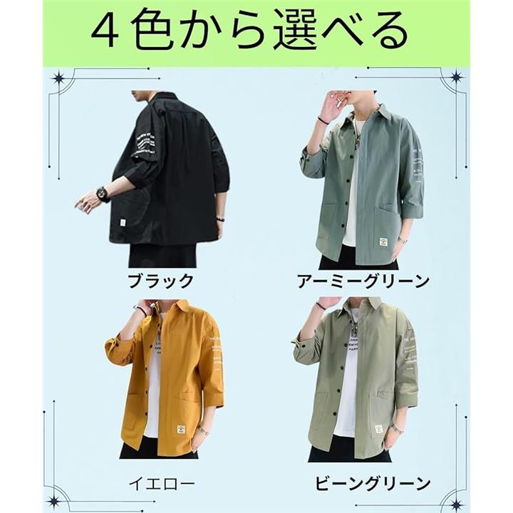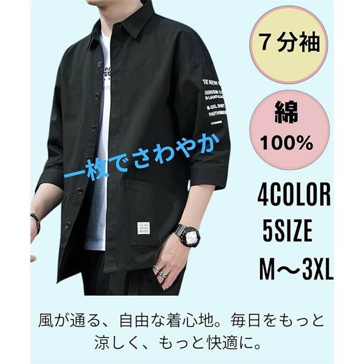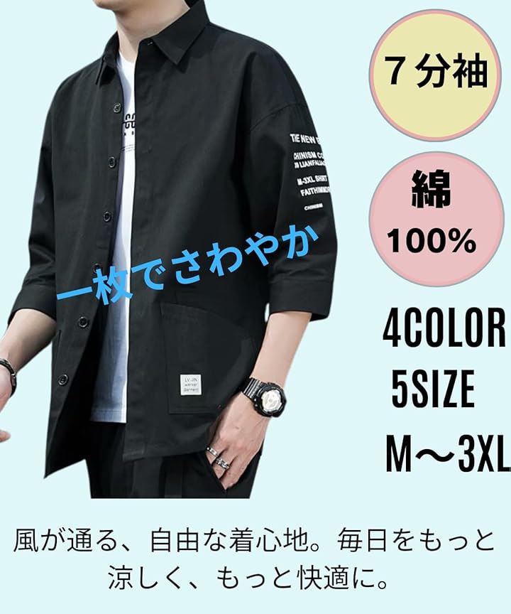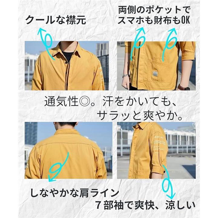 メンズ 七分袖 夏用シャツ 軽量 薄手 開襟 ゆったりシルエット ポケット付き カジュアル ジャパンスタイル おしゃれ 涼感 速乾 トレンド 無地 シャツコート