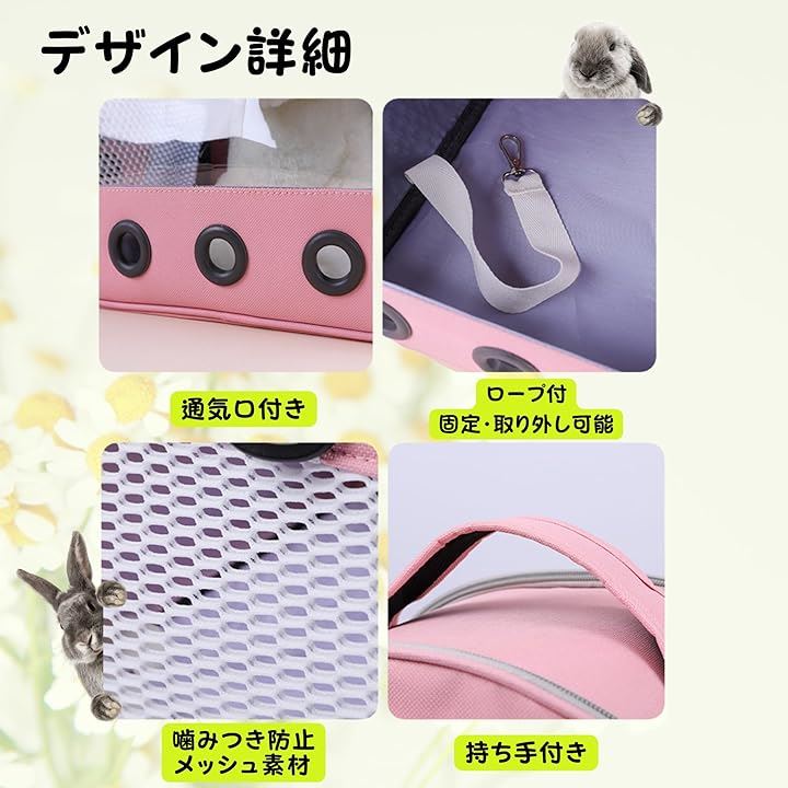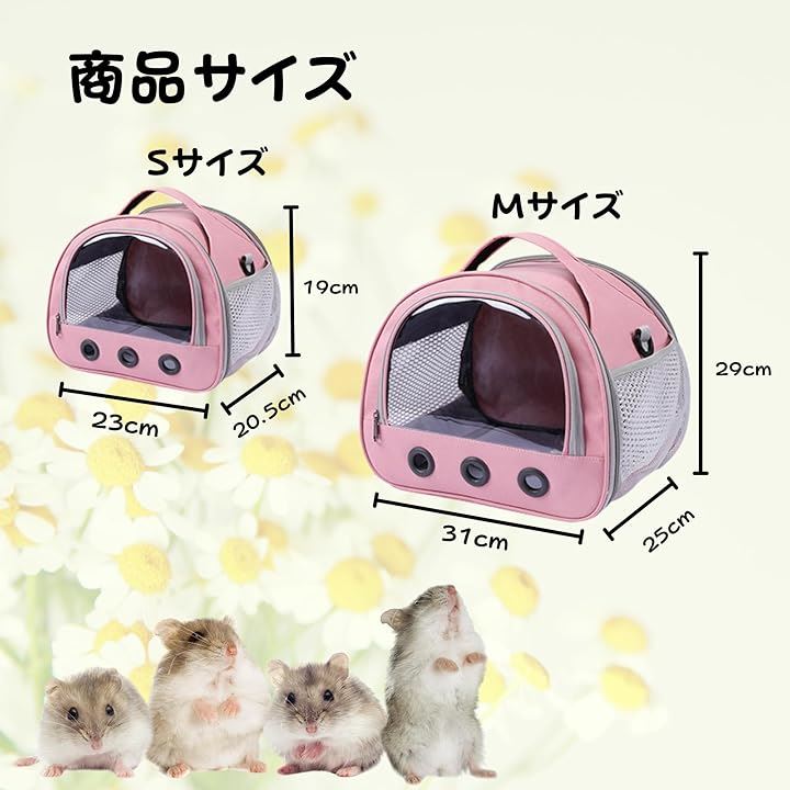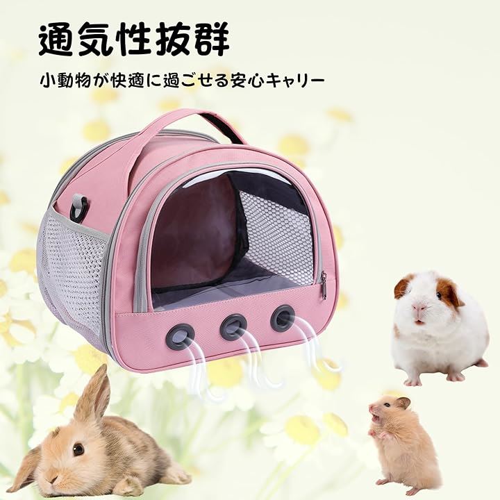 小動物用キャリーバッグ 軽量 通気性 ハムスター モルモット うさぎ フェレット チンチラ ハリネズミ お出かけ 通院 ポータブルバッグ 外出用