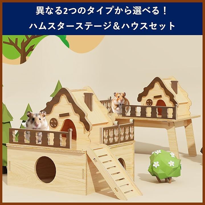 ハムスターハウス ハムスターステージ セット 木製 隠れ家 梯子 プラットフォーム 巣箱 遊び場