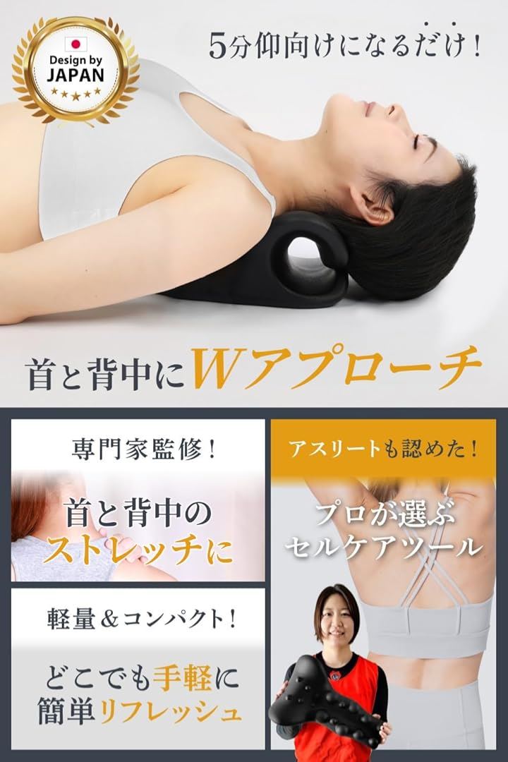 首と背中に同時にWアプローチ ネックピロー ストレッチ