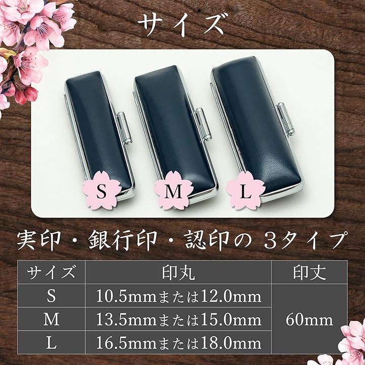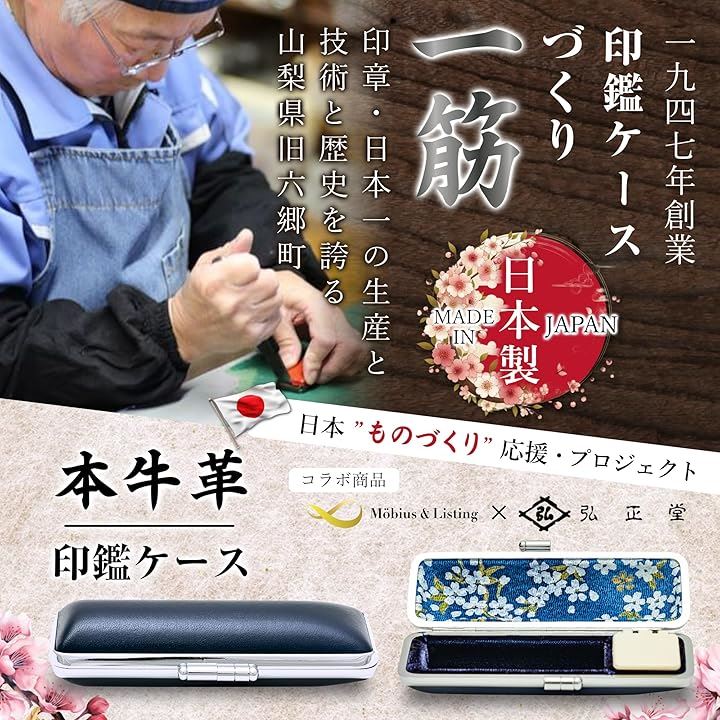 Möbius 日本製 職人の技 本牛革 印鑑ケース 真鍮 高級仕上げ 3サイズ 認印 銀行印 実印 対応 外張 本革 紺 ネイビー 内張 桜