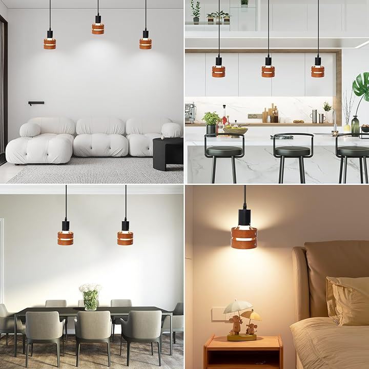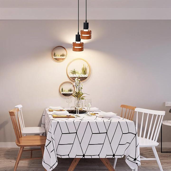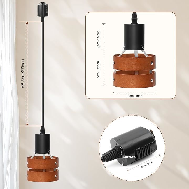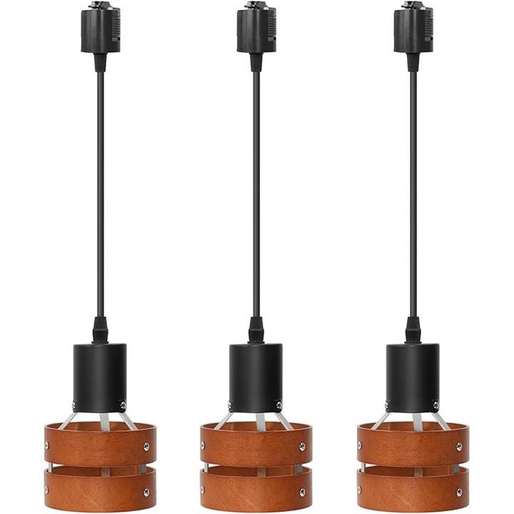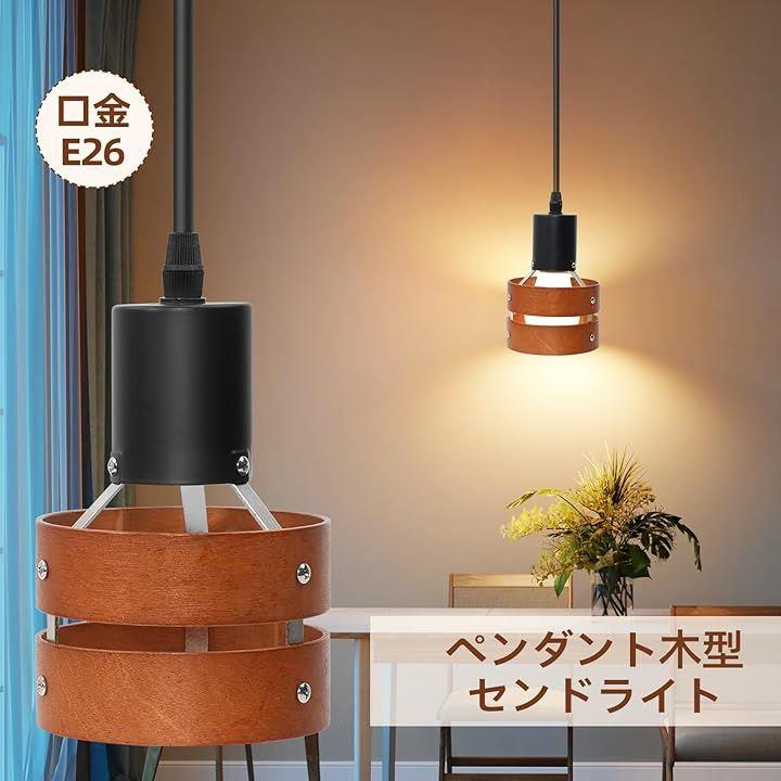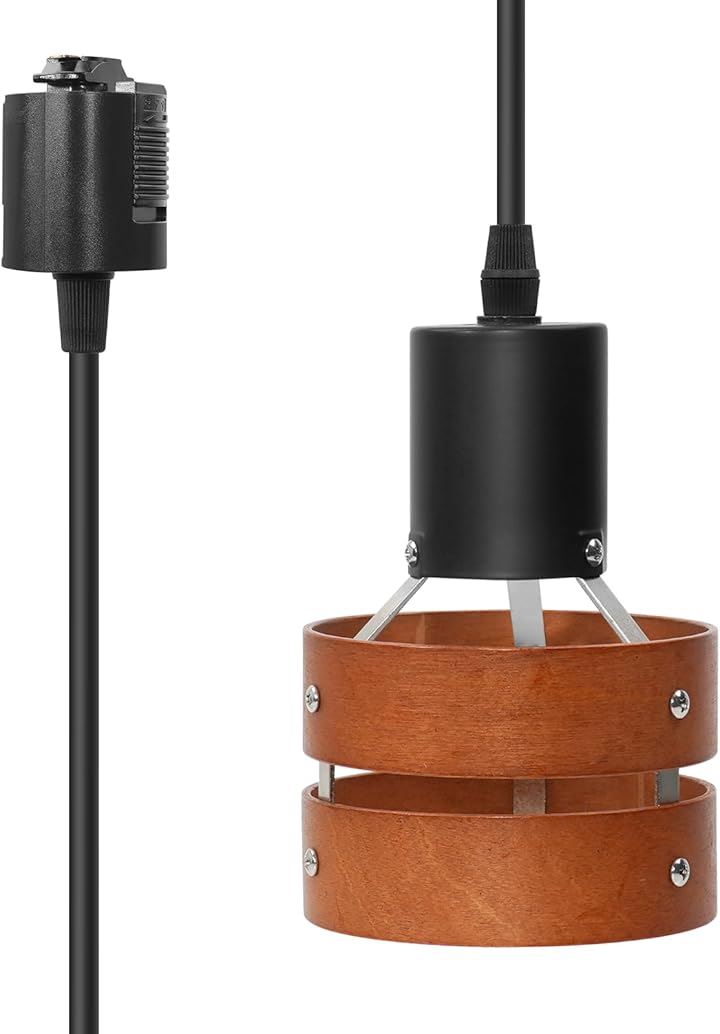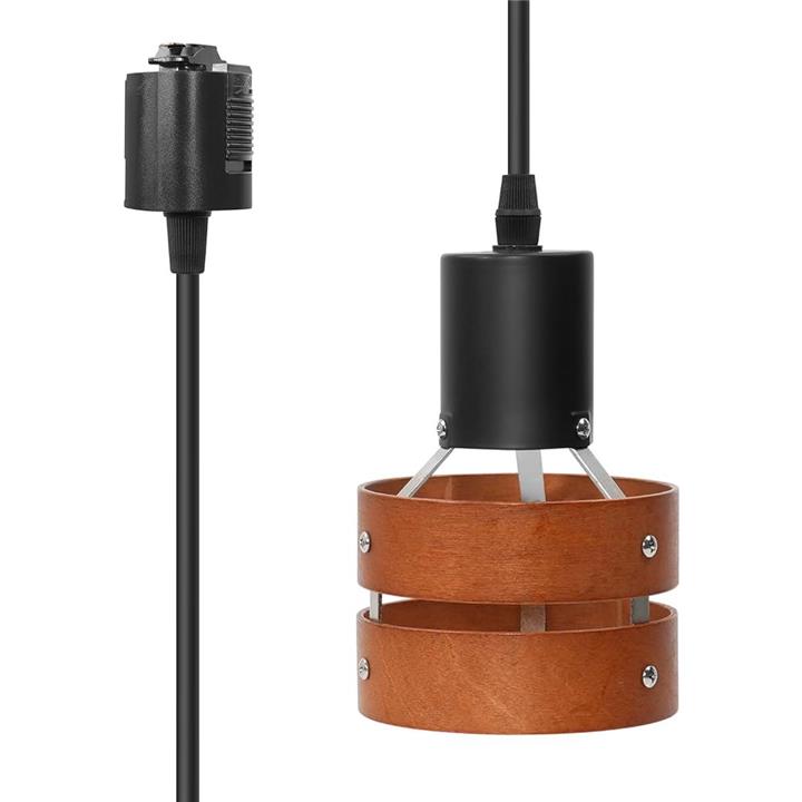 ペンダントライト 木の色木製の円 ダクトレール用 E26口金 長さ調整可能 ロック機構により脱落を防止 簡単なインストール 太いロープ 高級 和風 目に優しい 節電 省スペース設計 寝室 高級レストラン 書斎 廊下 植物 水槽の照明