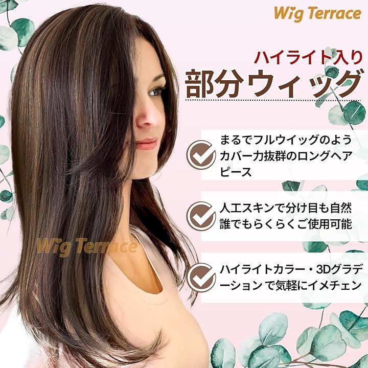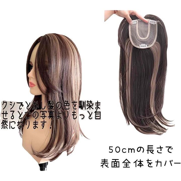 ヘアピース 部分ウイッグ ロング ストレート ハイライト 3D グラデーション 50cm メッシュ ロングウイッグ フルウイッグの様なヘアピース 広いネットベース