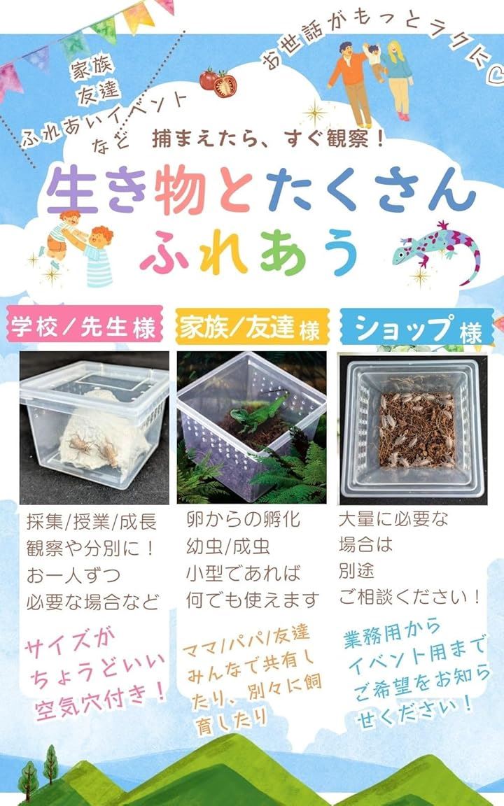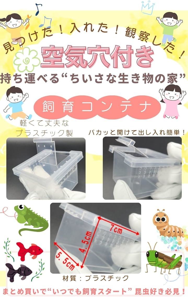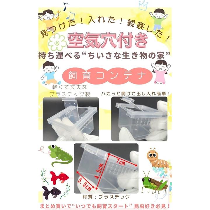 昆虫飼育ケース 小型 コンテナ ボックス 空気穴付き プラスチック製 小動物・卵 幼虫 繁殖