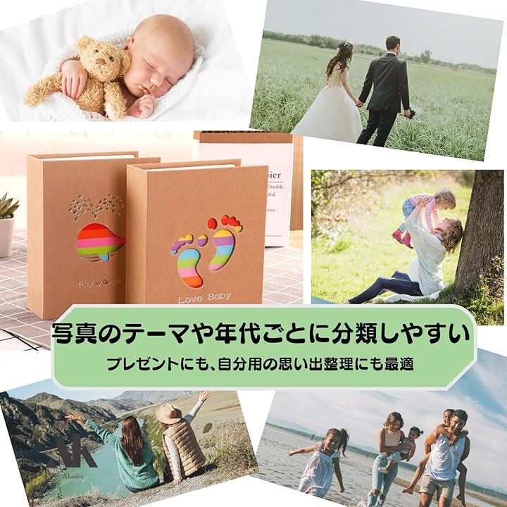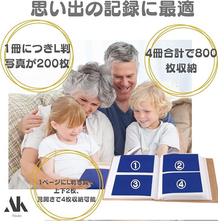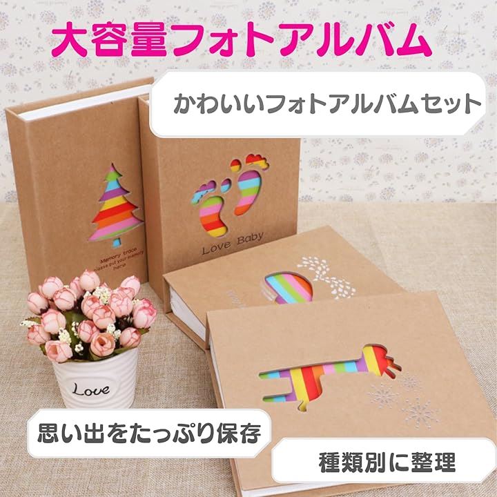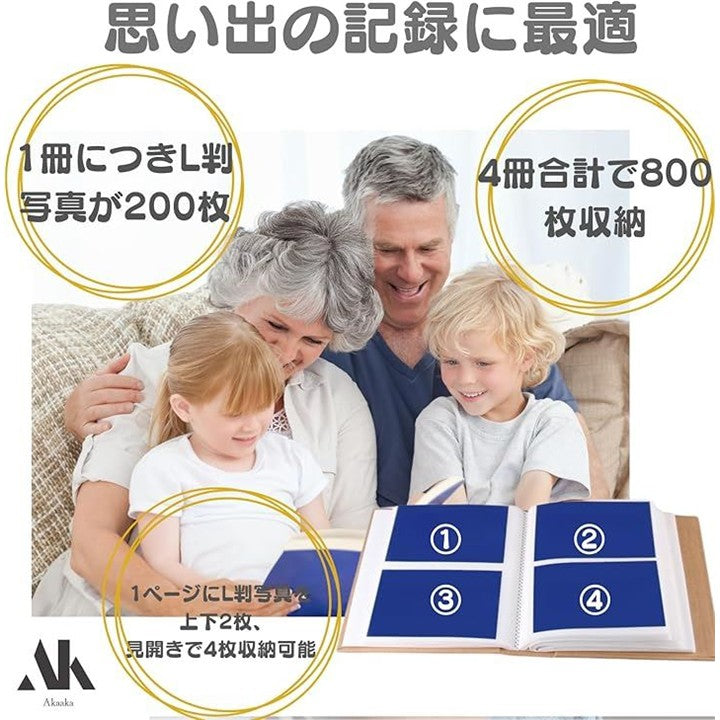 アルバム 大容量 写真 収納 見開き エコー写真 かわいい おしゃれ 出産祝い 結婚祝い 記念 ギフト 800枚 4冊セット L判