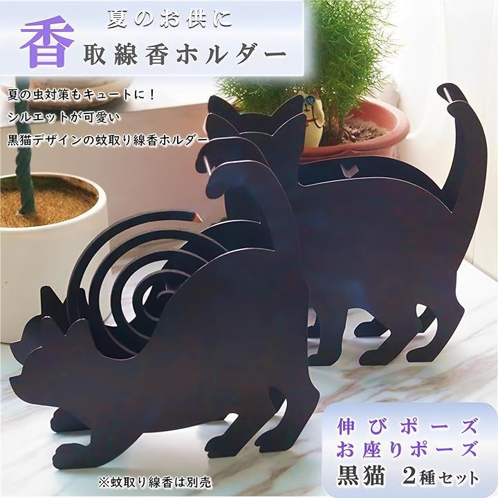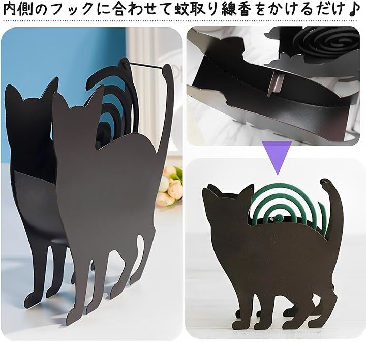 蚊取り線香ホルダー 猫 2個セット 線香入れ キャンプ レトロ おしゃれ 室内 室外 アウトドア 虫除け 吊り下げ