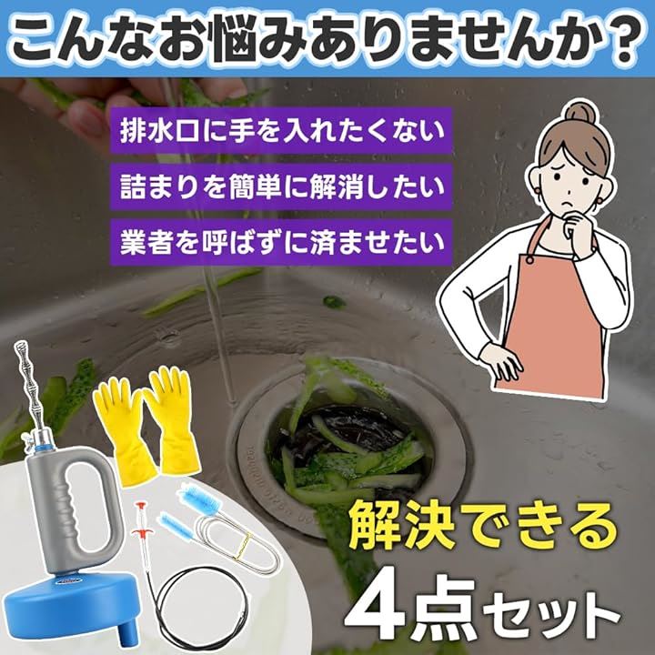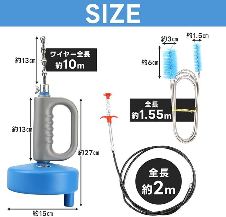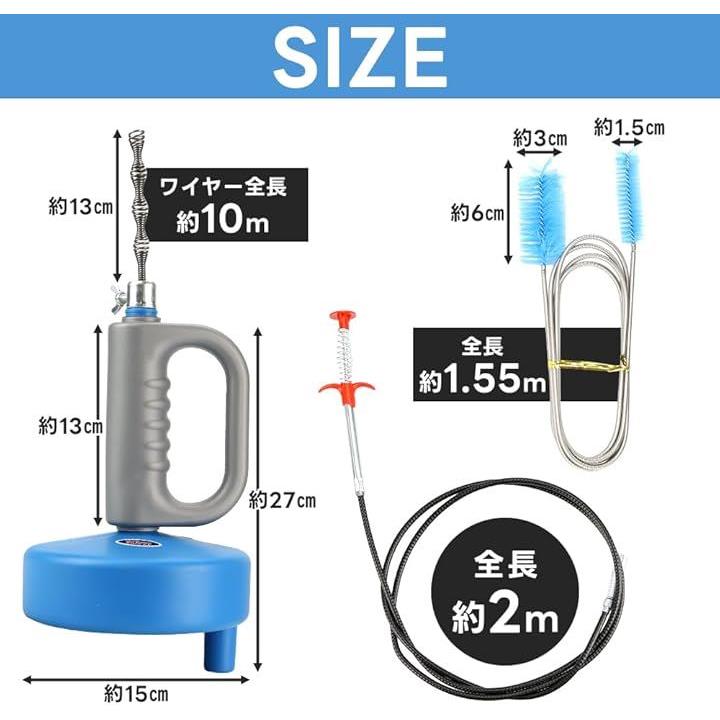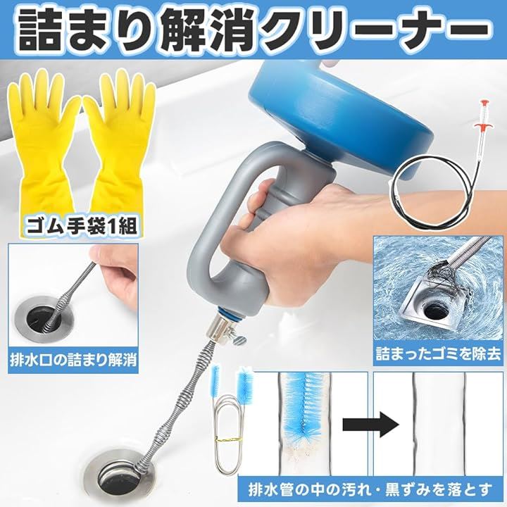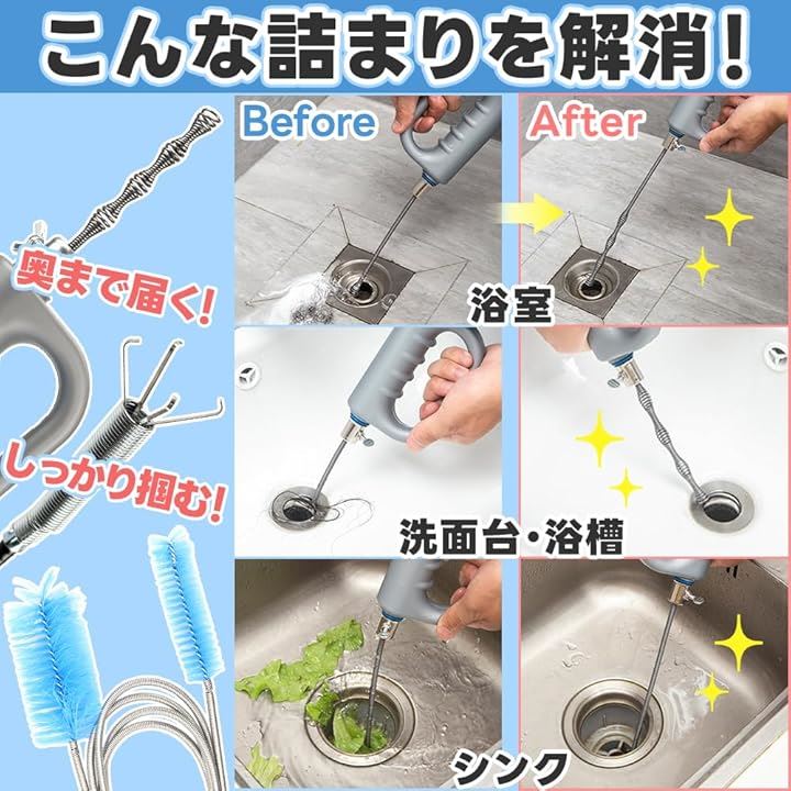 排水口掃除グッズ 回転式パイプクリーナー 詰まり除去 水回りトラブル 台所 トイレ 浴室