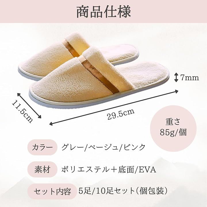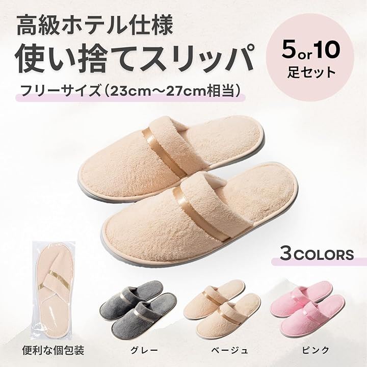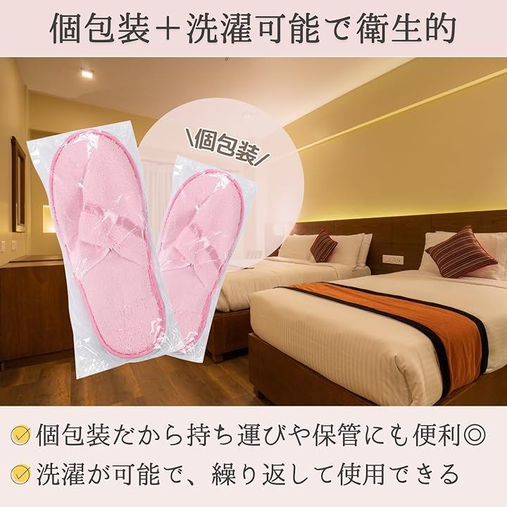使い捨てスリッパ ホテル仕様 個包装 5足セット ふわふわ ホテルスリッパ ルームシューズ 来客用 高級 旅行 サロン