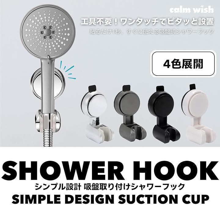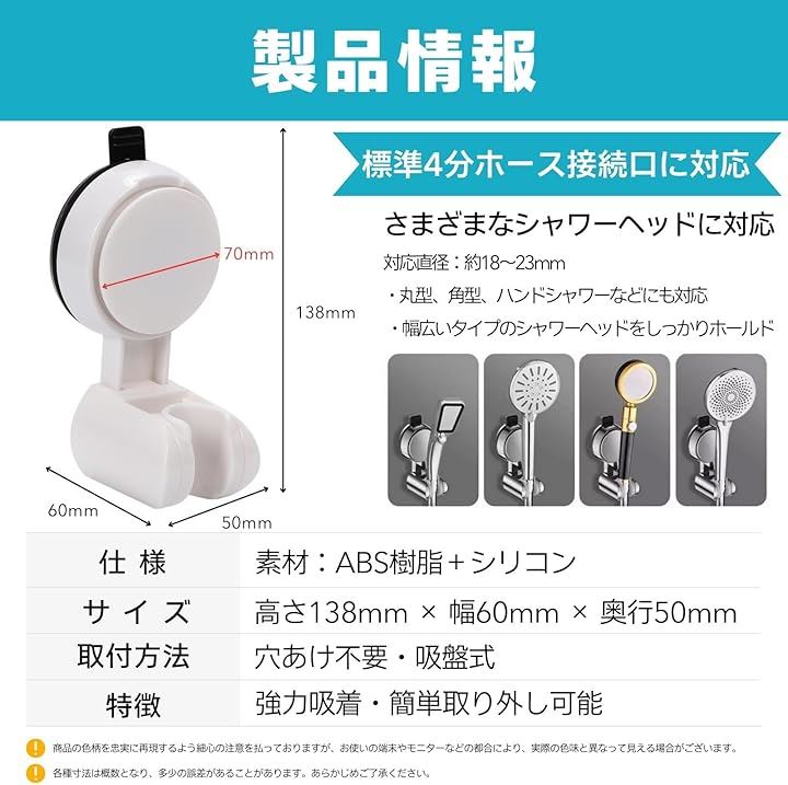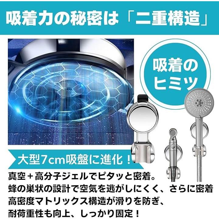 シャワー フック 吸盤 ラック ホルダー ヘッド 壁 バス ルーム 真空 浴室 高さ 角度 調整 取り付け 汎用