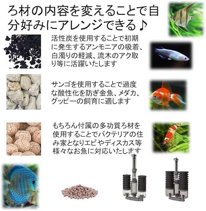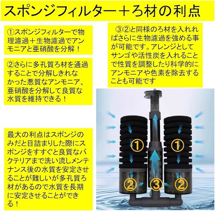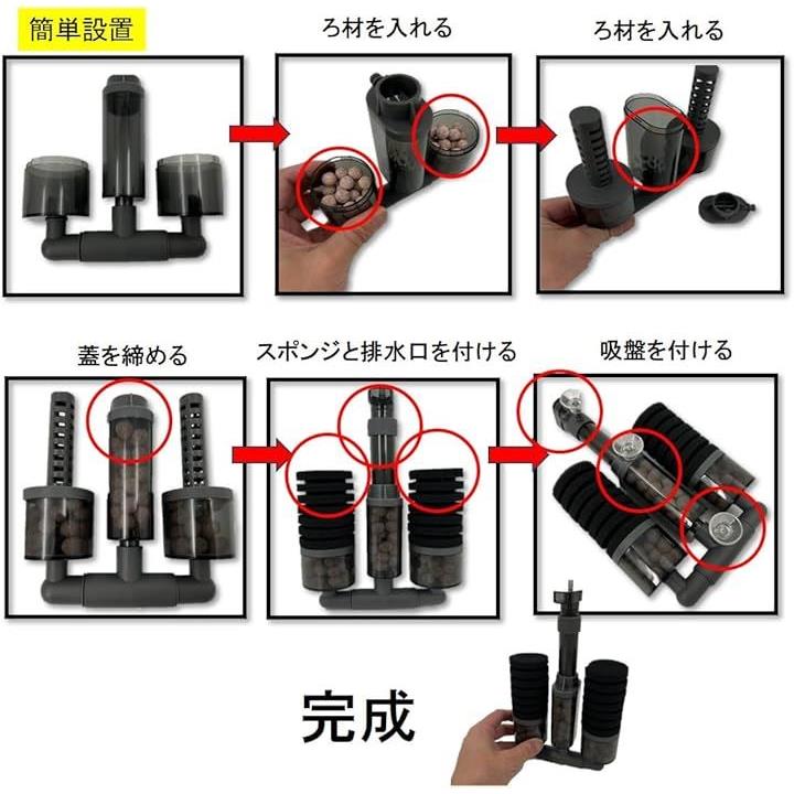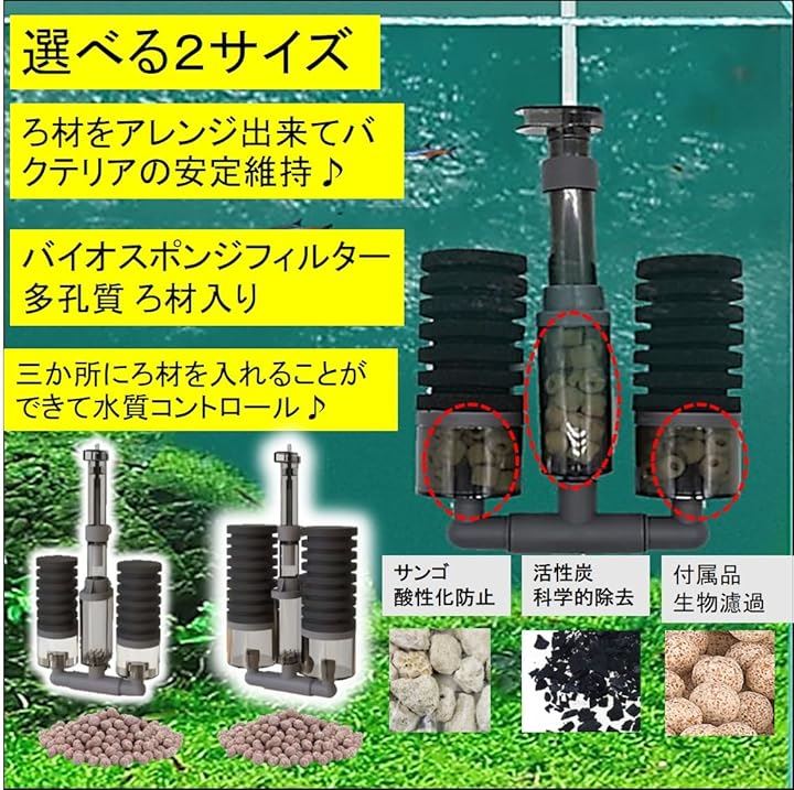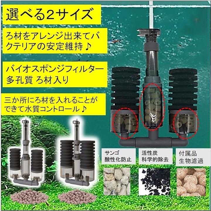 増量版 バイオスポンジフィルター 多孔質 ろ材入り 簡単設置 アクアリウム 水槽 ろ過 バクテリア 熱帯魚 金魚 メダカ エビ