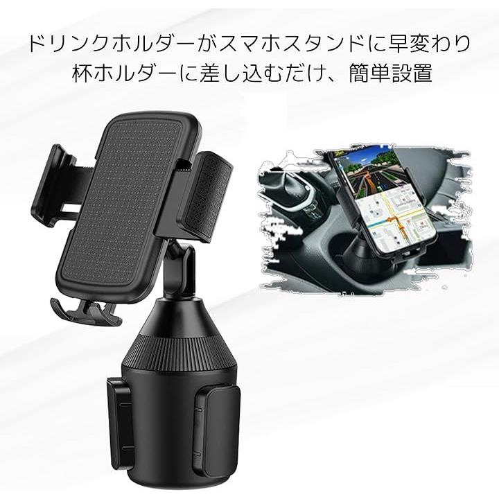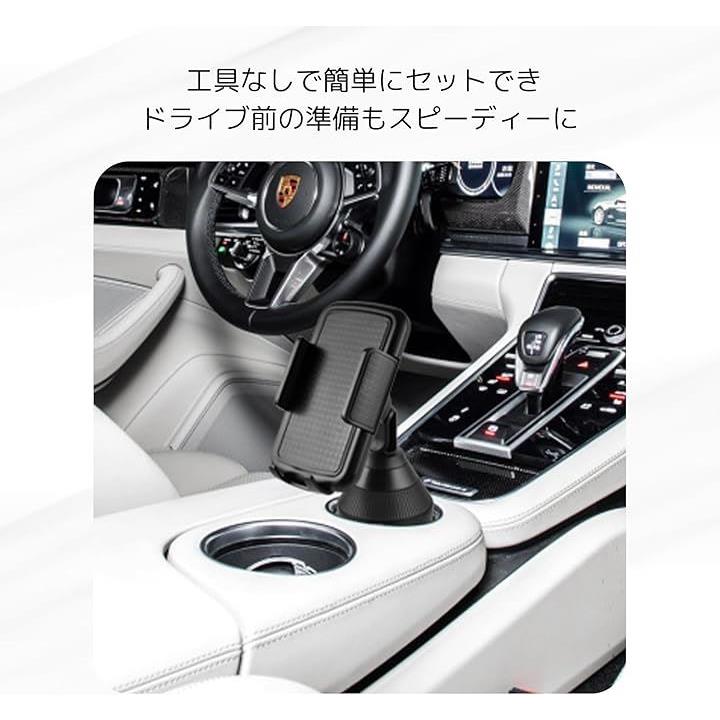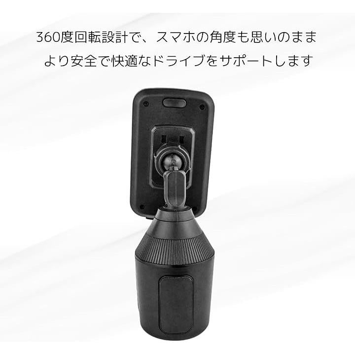 スマホ用車載ホルダー ドリンク式携帯ホルダー スマホホルダー 取り付け簡単 360度回転 多機種対応