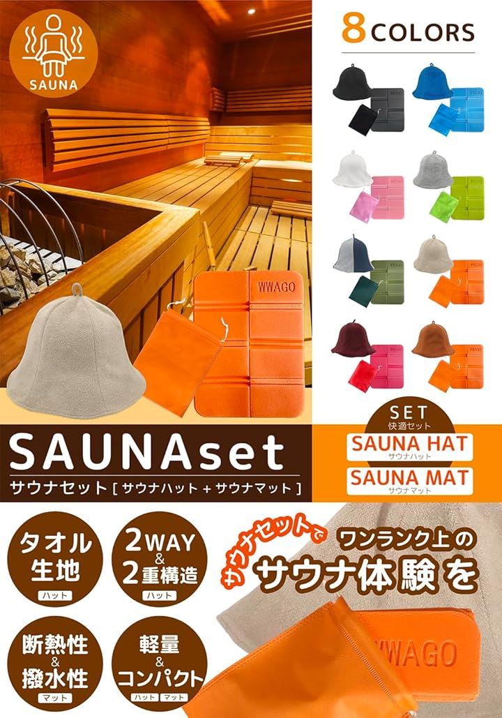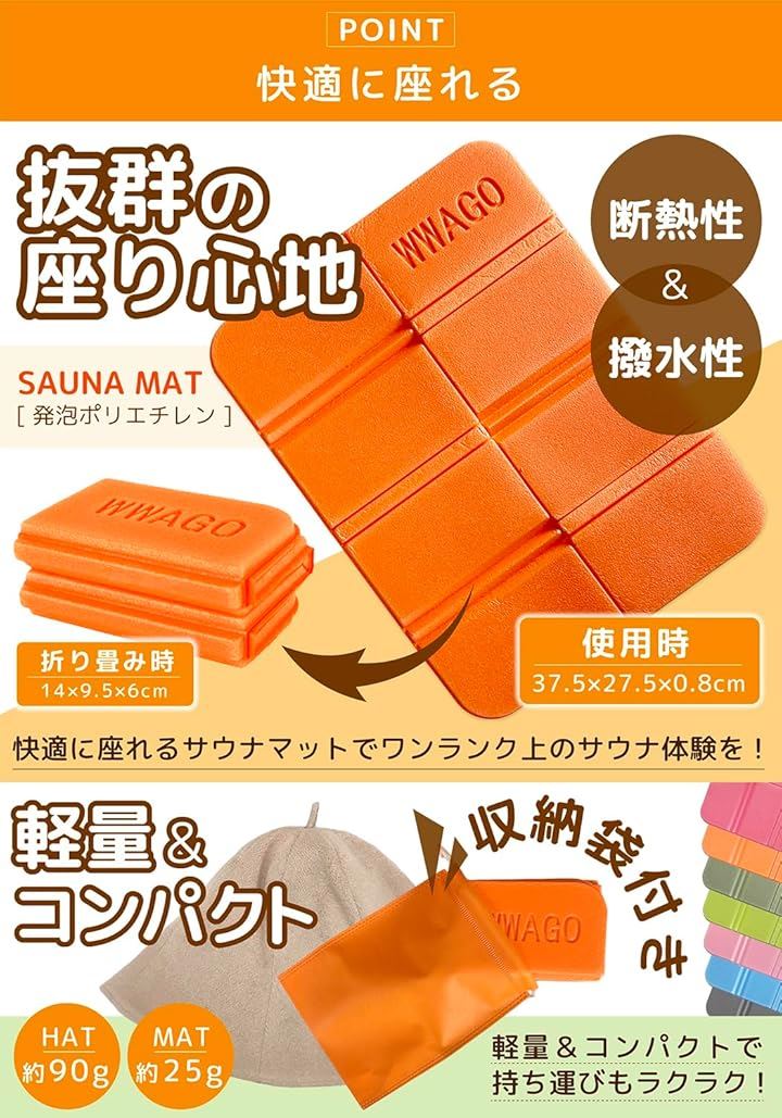 ハットはのぼせ防止&保湿効果があり、マットは断熱性&撥水性で座り心地抜群。