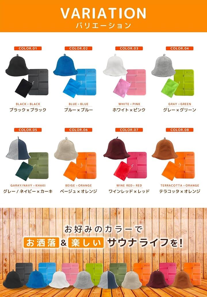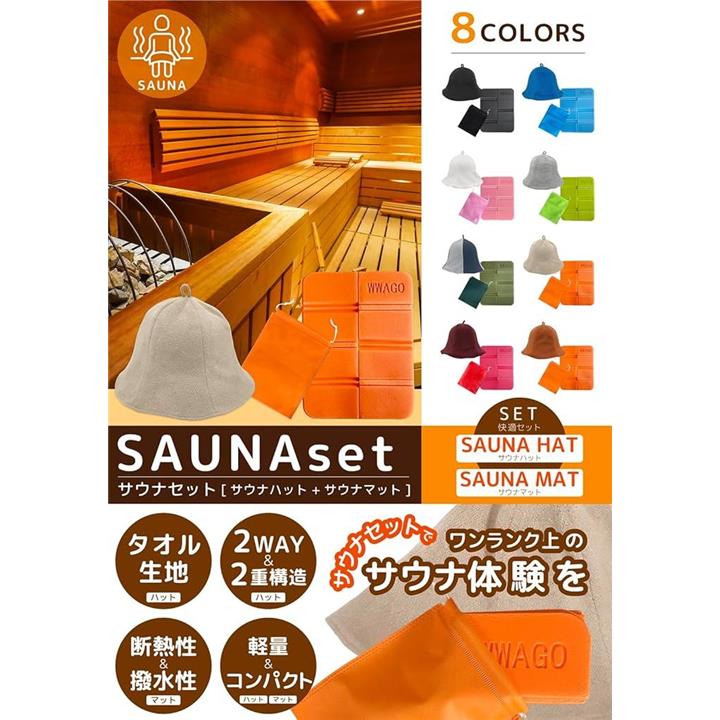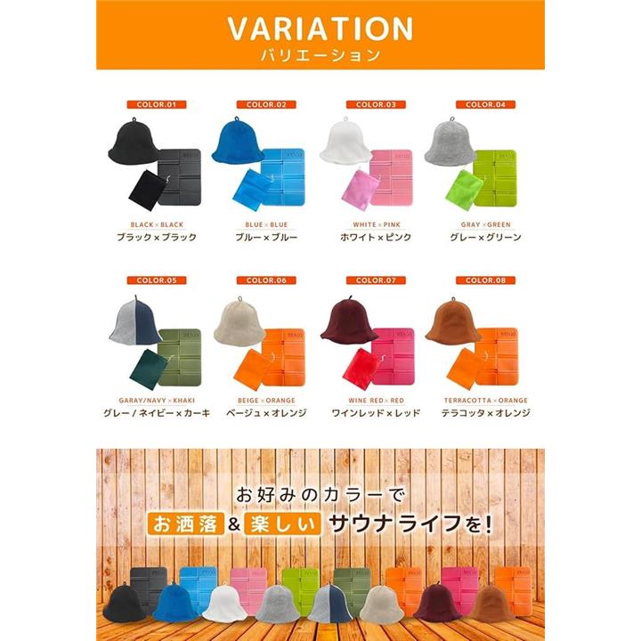 サウナハット&マットのセット。 快適に座れる サウナマット を組み合わせて、届いたその日からワンランク上のサウナ体験を。