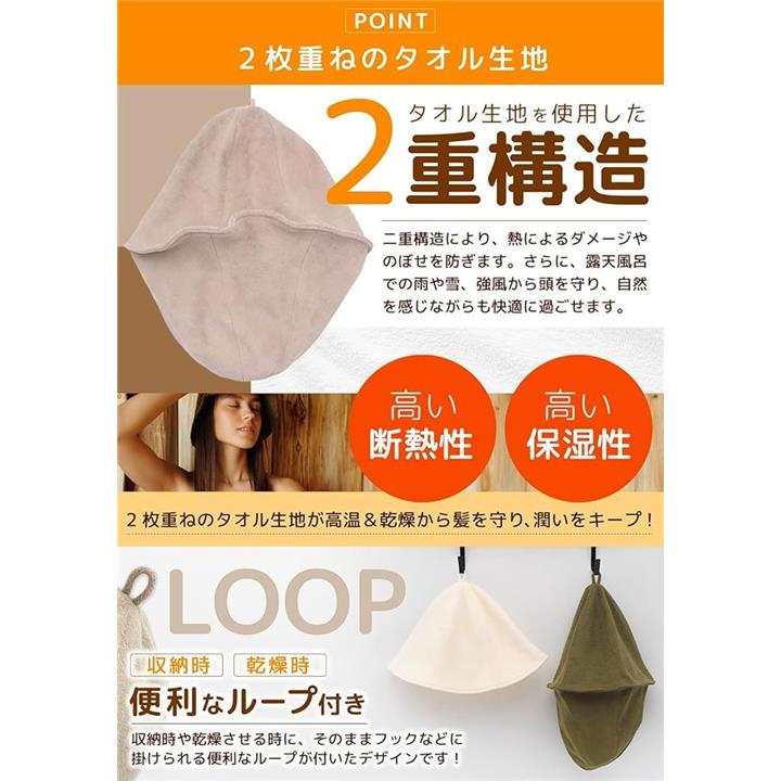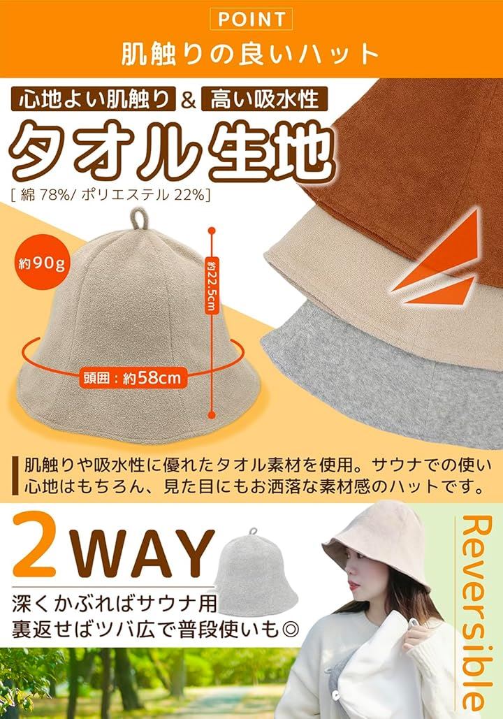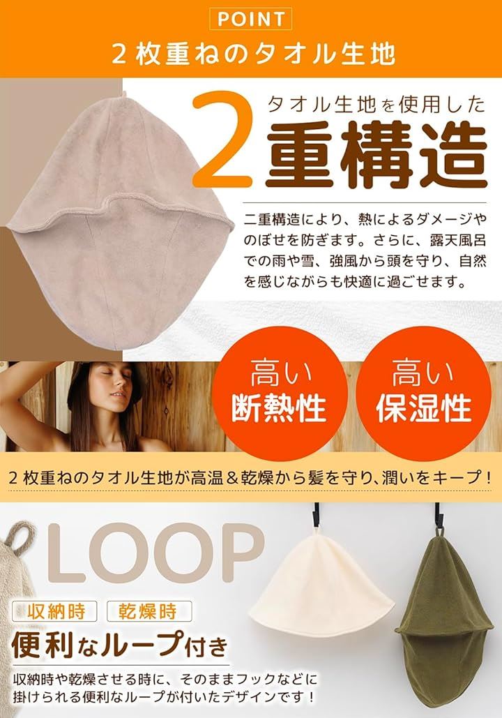 [Vivrella] サウナハットタオル生地 メンズ レディース やわらかい 2重構造 洗える 髪の傷み防止 サウナマット付き |