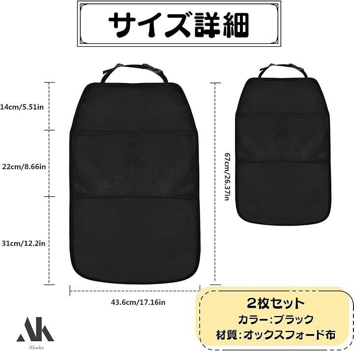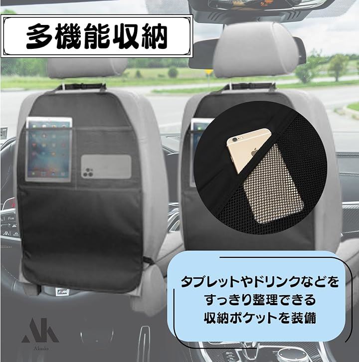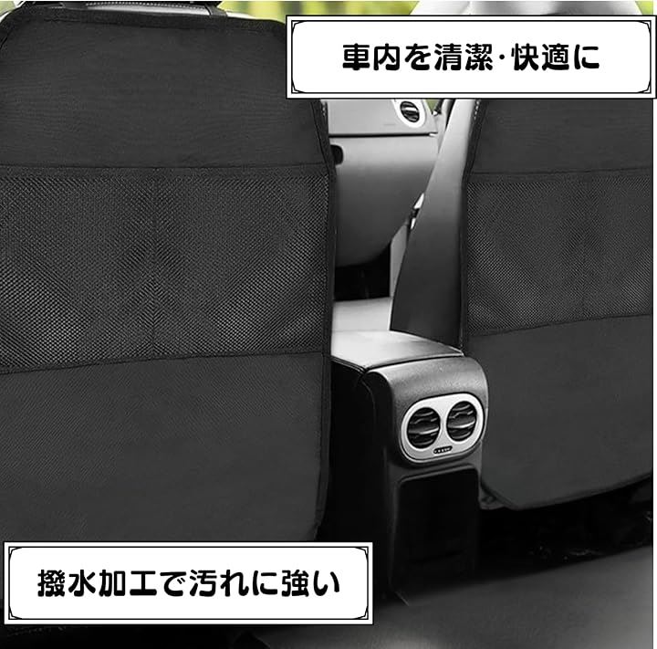 キックガード 車 シートカバー シートバックポケット 後部座席 車内 汚れ防止 収納ポケット付き 便利グッズ 子供キック対策 2枚セット