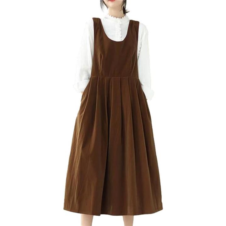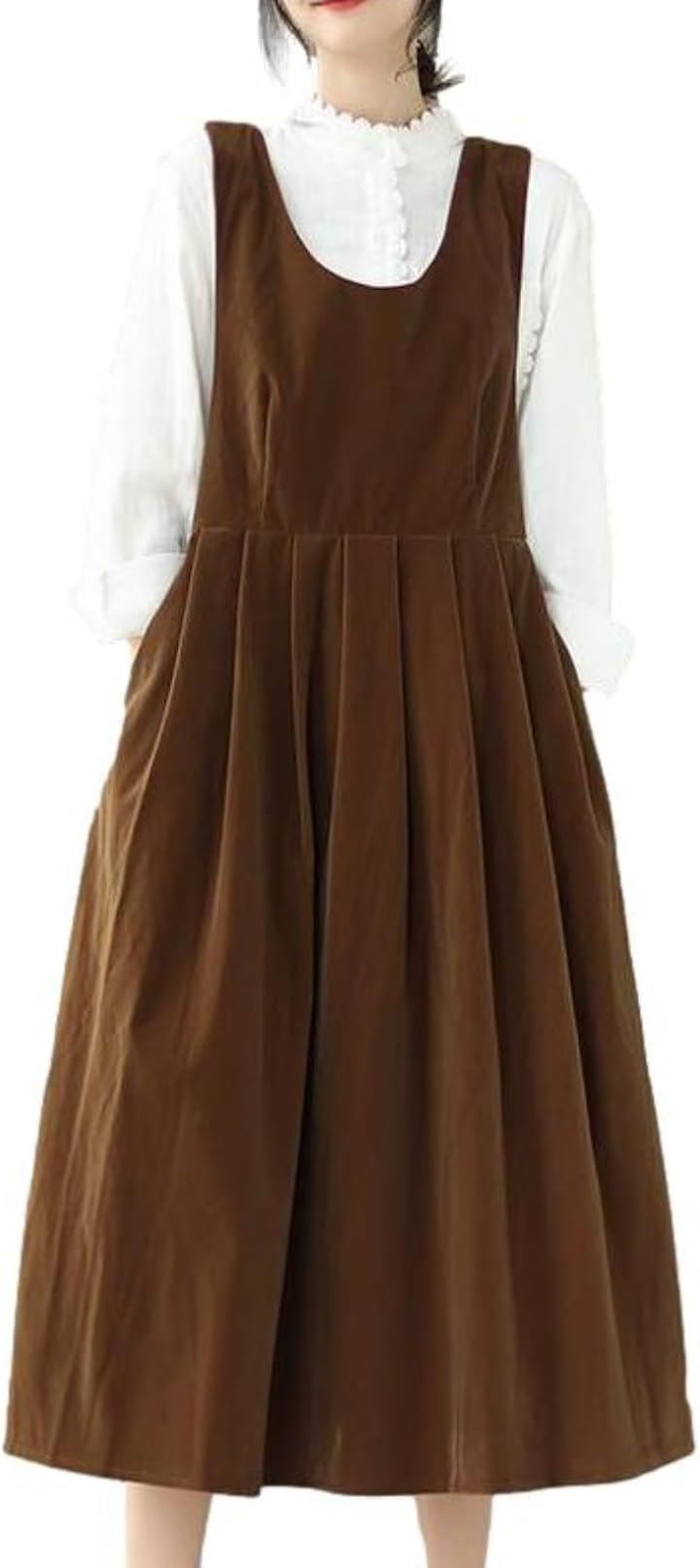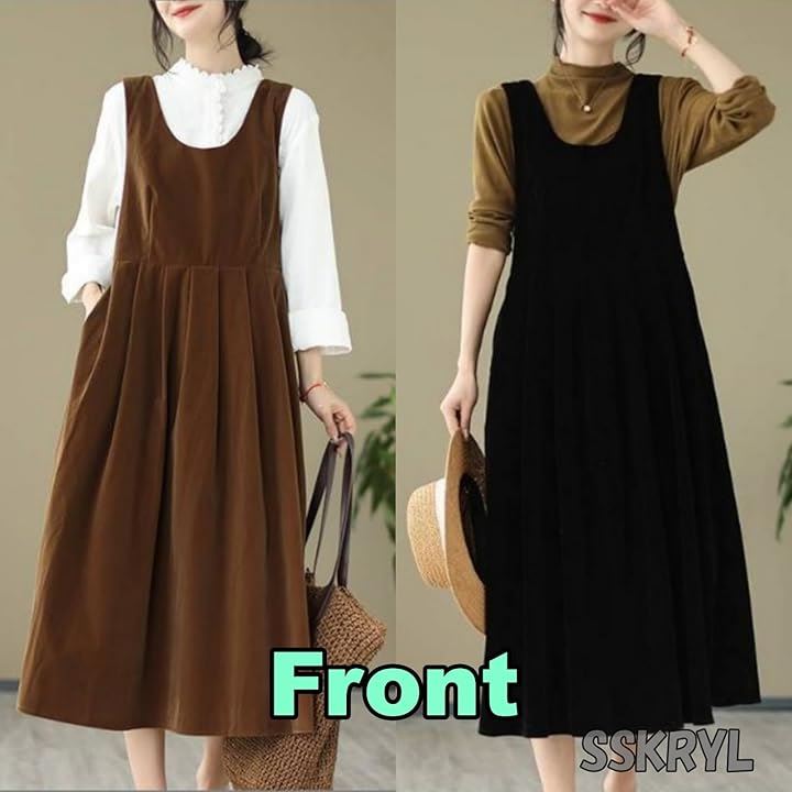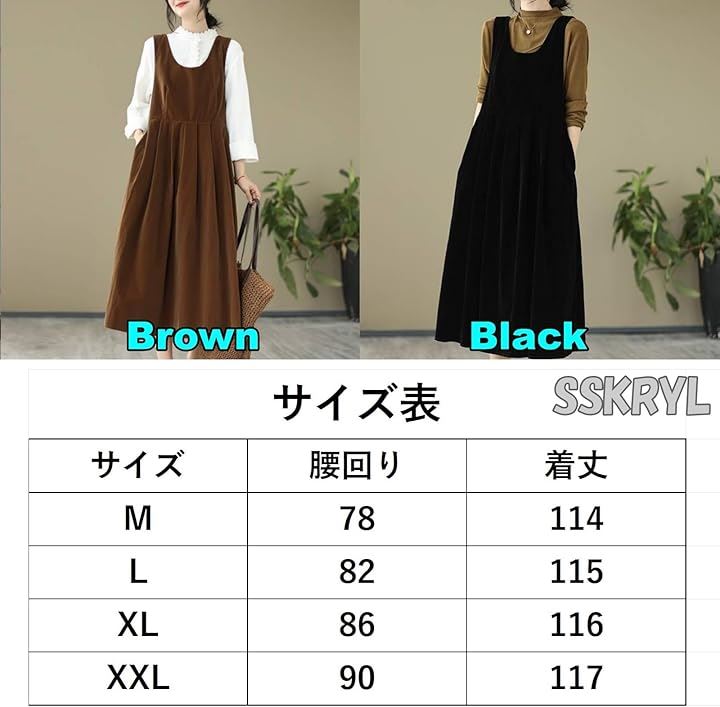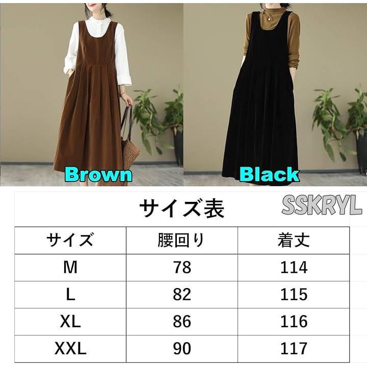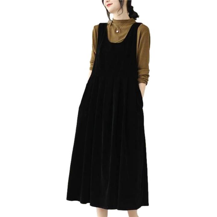 レディース ジャンパー スカート ロング ワンピース フレア Uネック カジュアル ベロア