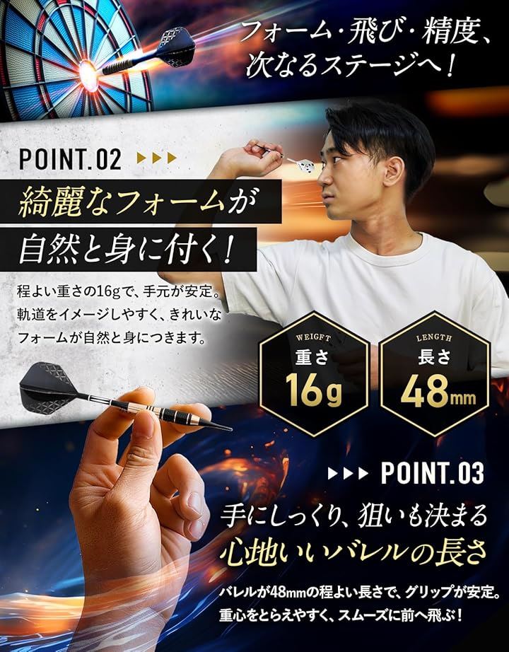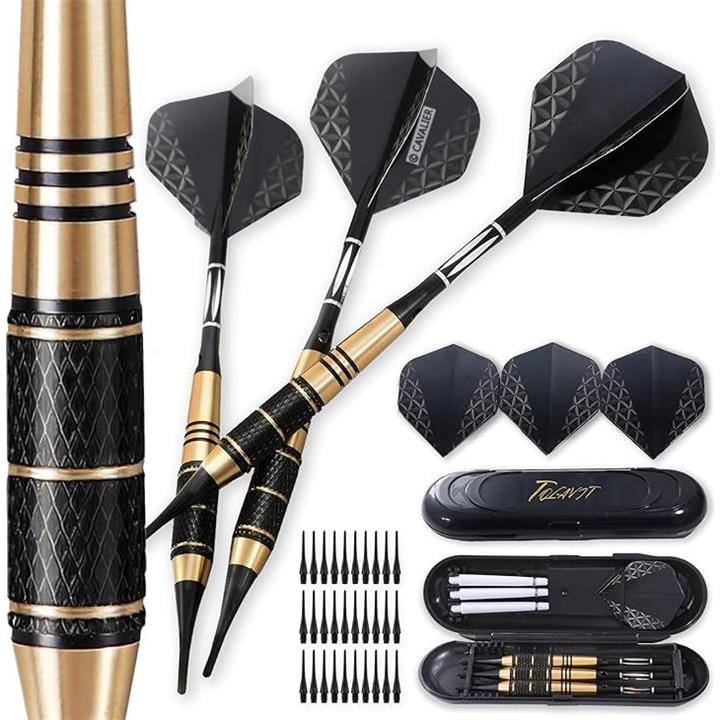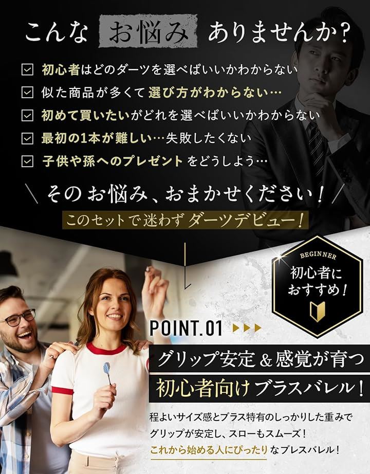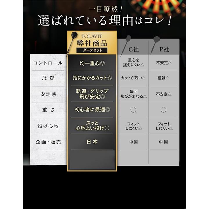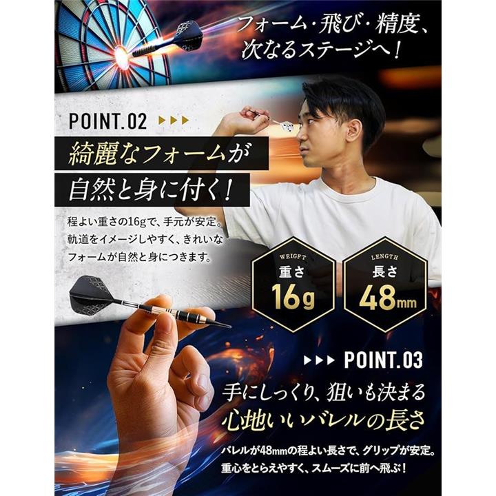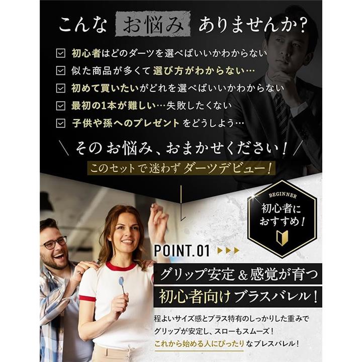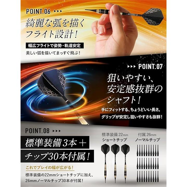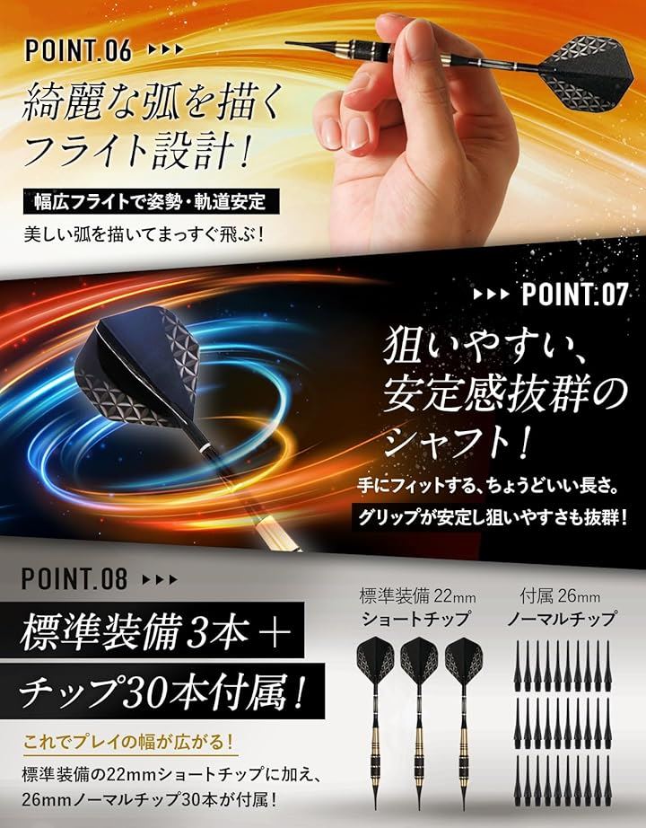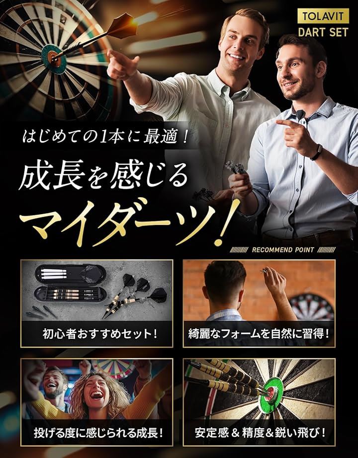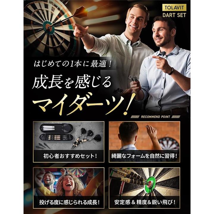 フォームが整い、飛びが変わる。初心者~中級者向け高性能ダーツ。マイダーツセット 矢3本 チップ付属30本 ダーツケース付き 幅広フライト ブラスバレル シャフト 本格的 ソフト