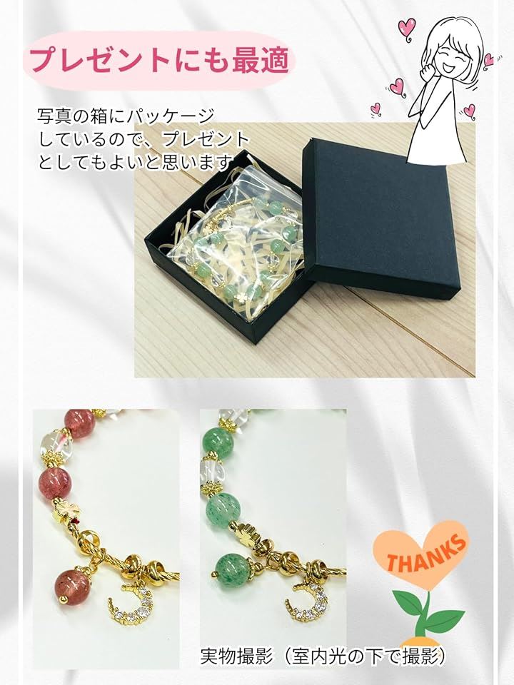 天然石 ブレスレット 2種類の天然石と金属パーツの組み合わせ 箱入り