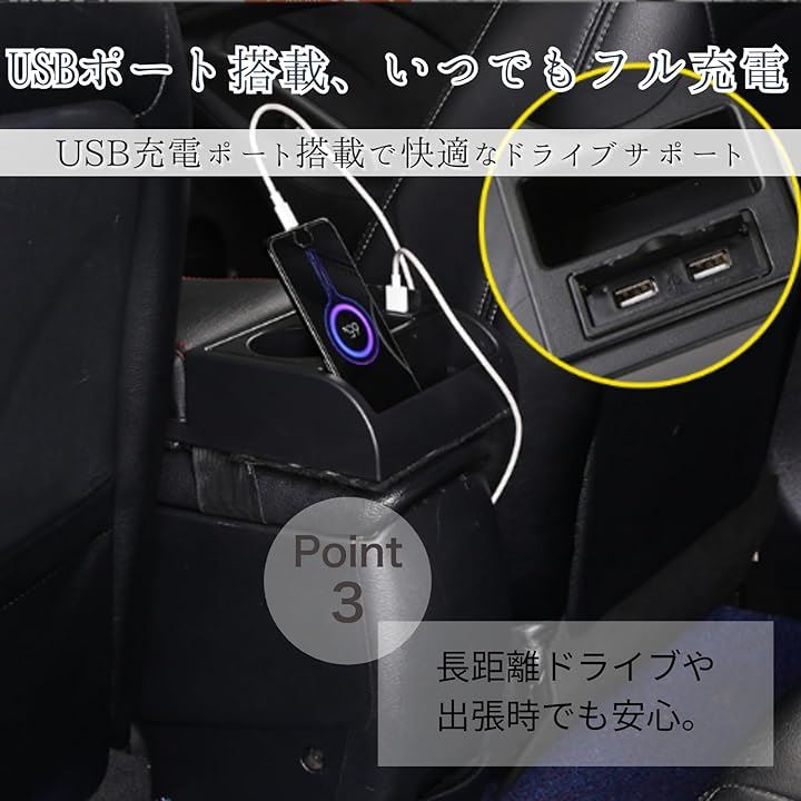 コンソールボックス 車用 アームレスト 車用アームレスト 肘置き USB充電ポート付き