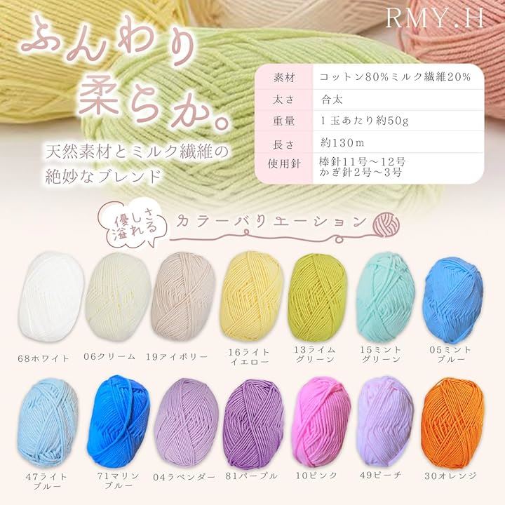 コットンヤーン 並太 春夏毛糸 コットン毛糸 50g 130m 10玉セット