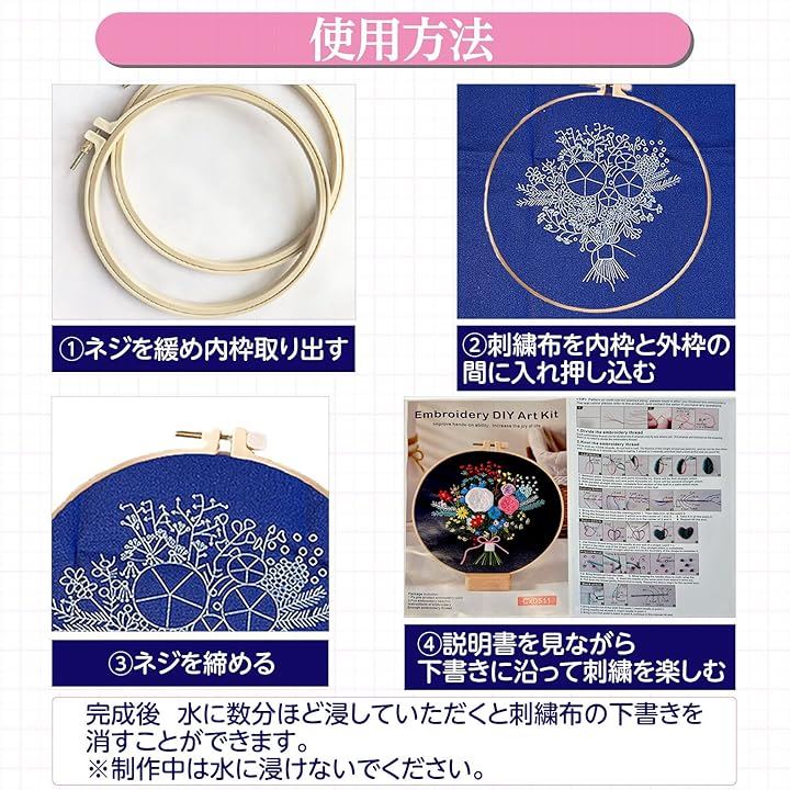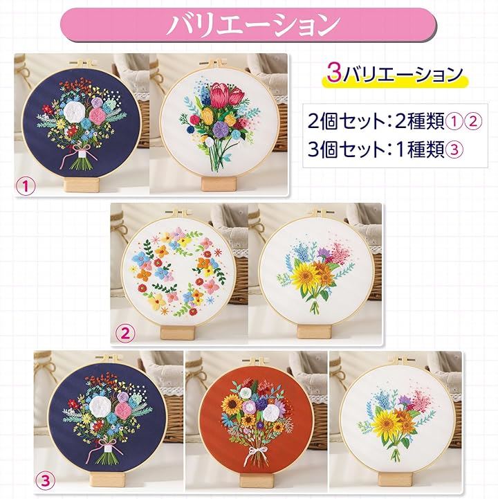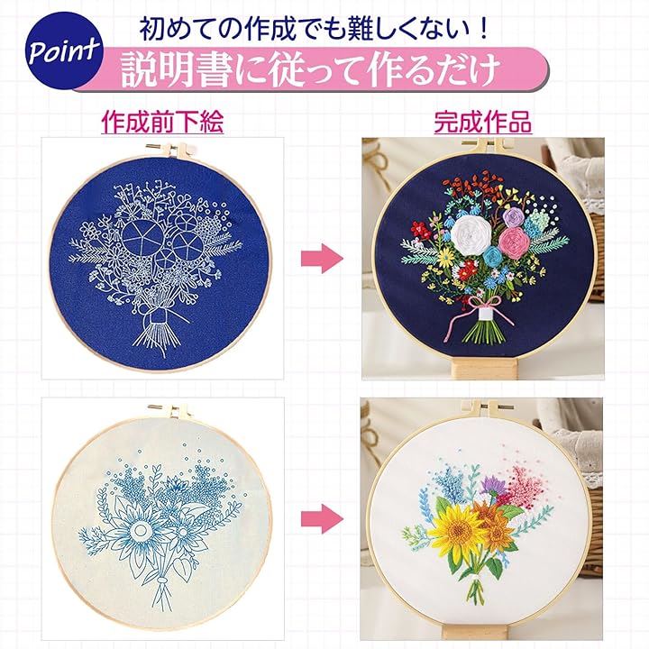 刺繍キット 刺繍糸 刺繍枠 刺繍針 DIY クロスステッチ 初心者 セット 花 フランス刺繍
