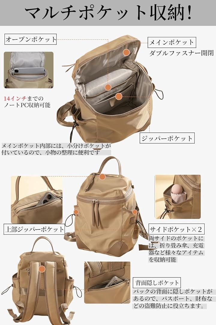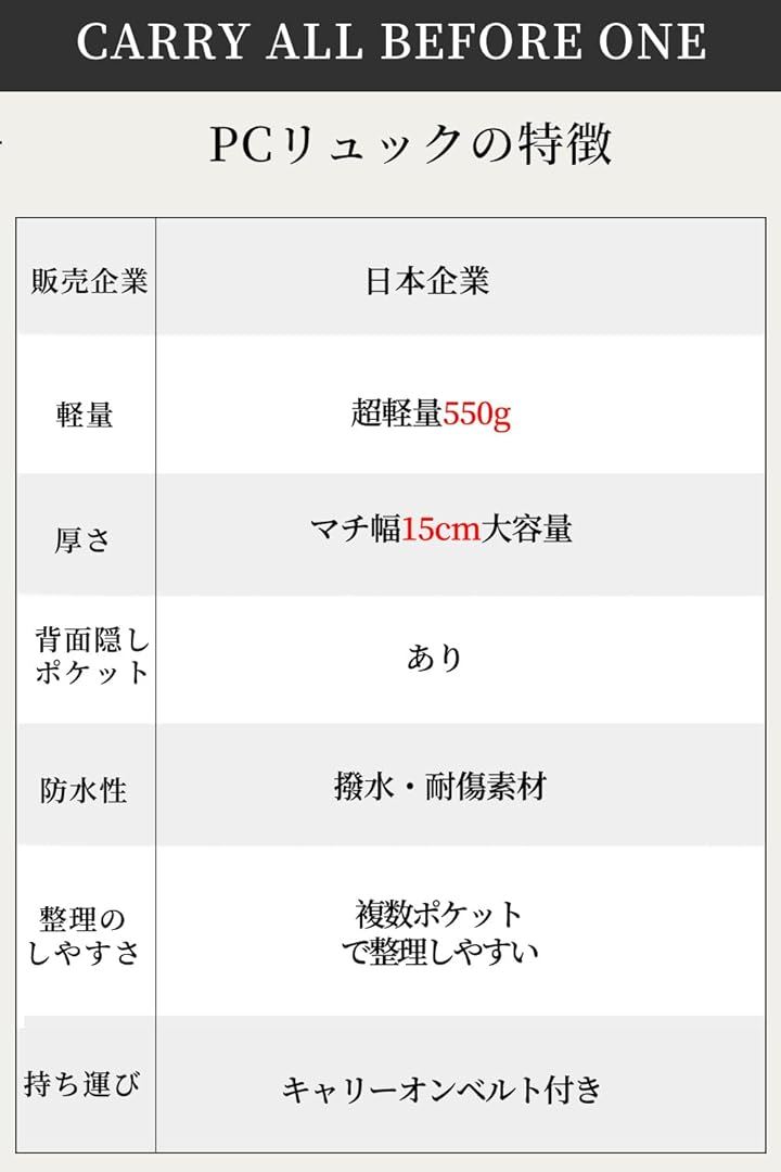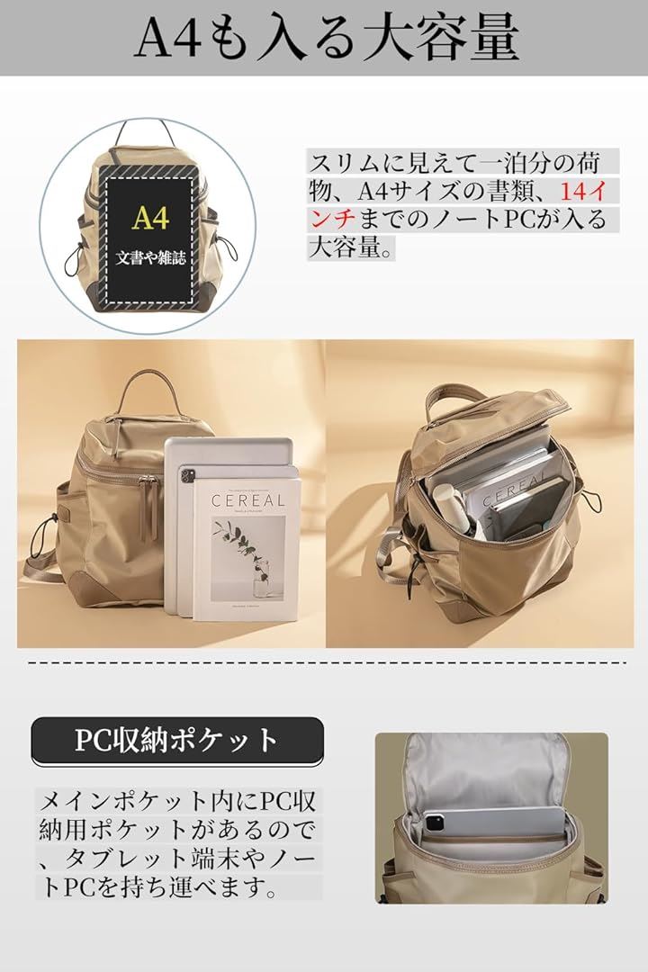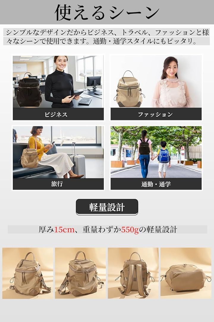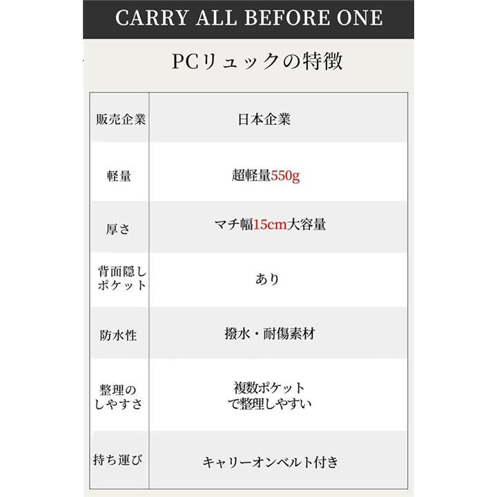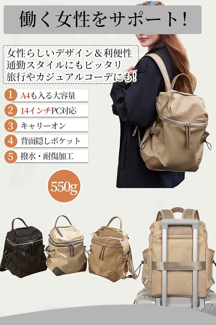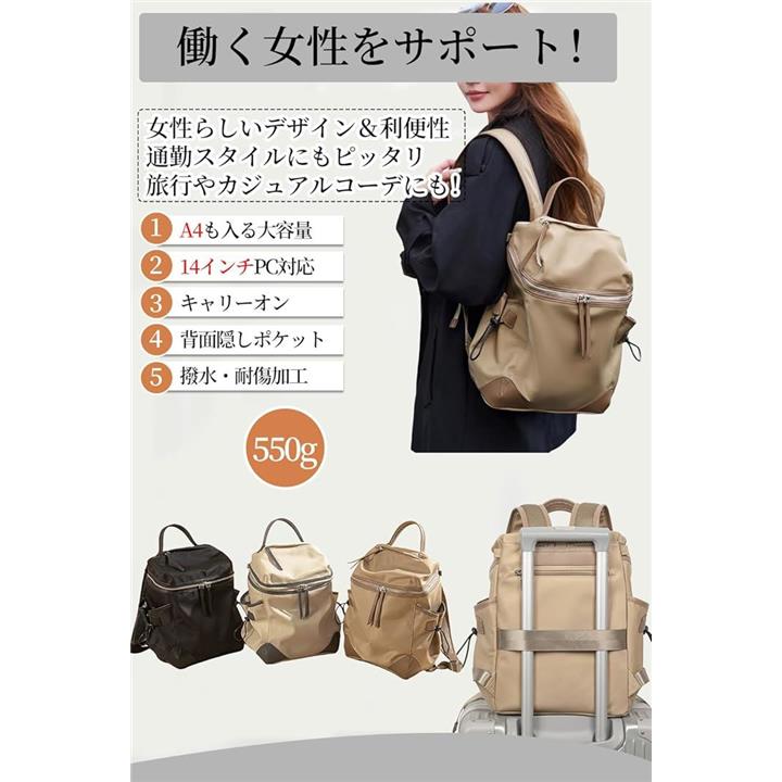 ビジネスリュック パソコン PC収納 レディース 13インチ対応 キャリーオン 撥水・耐傷
