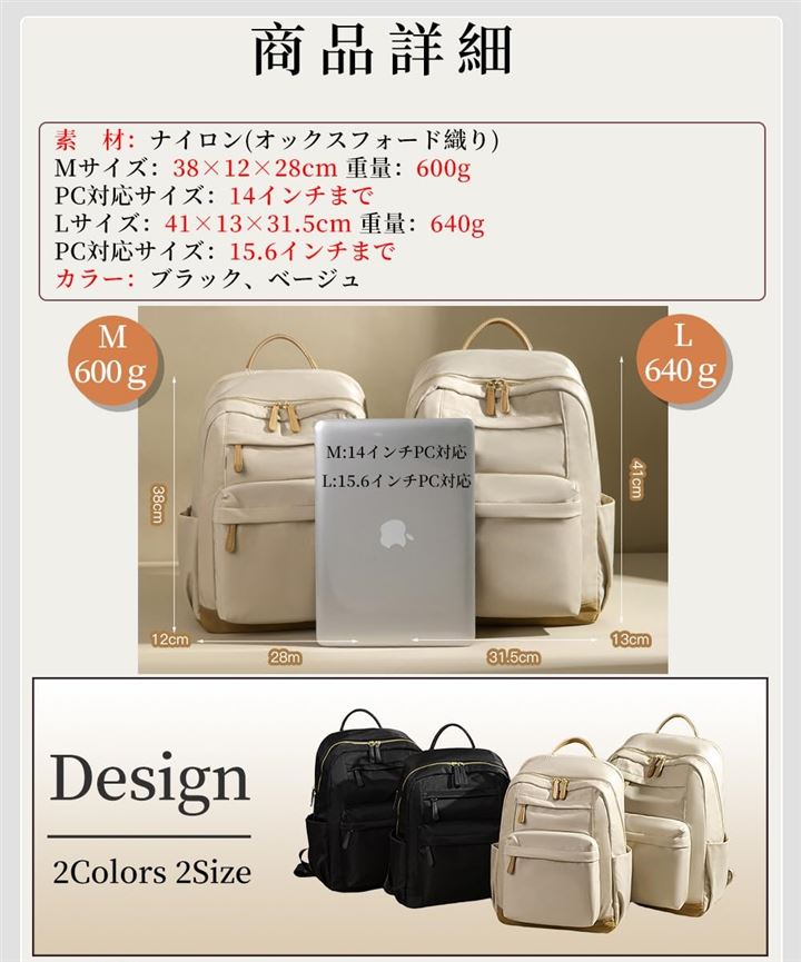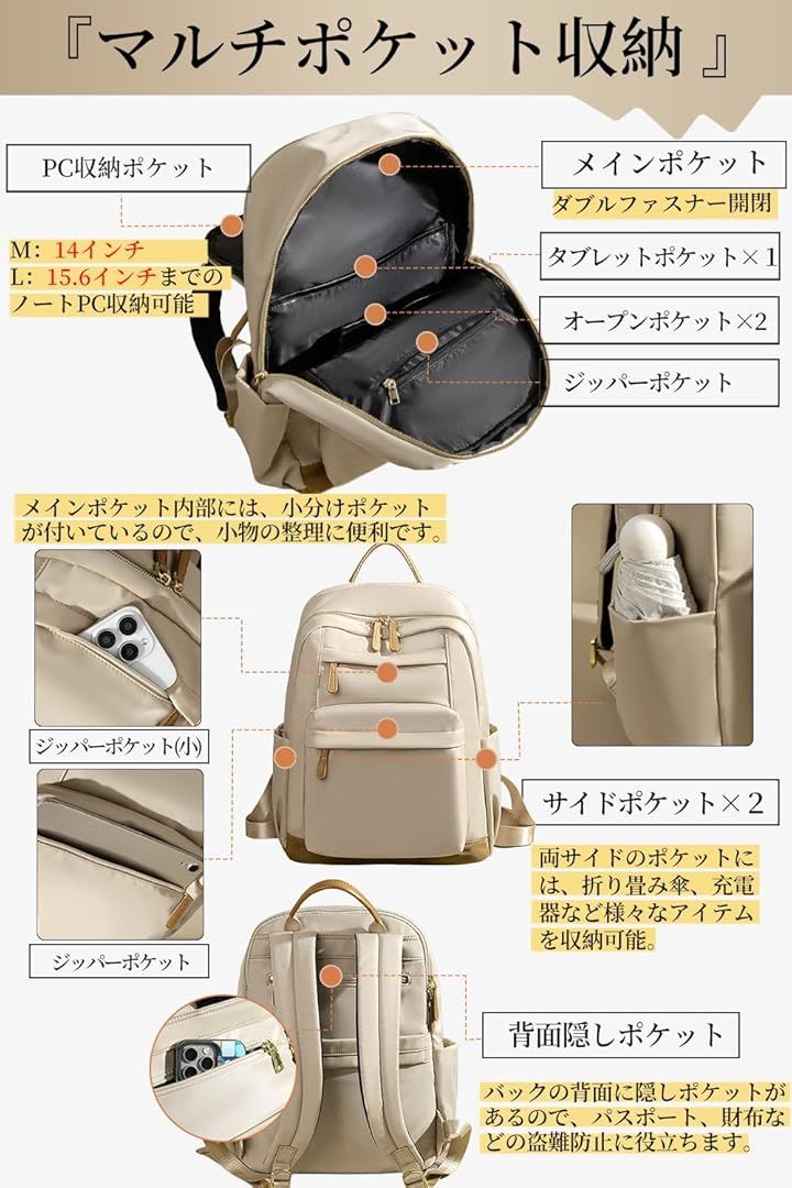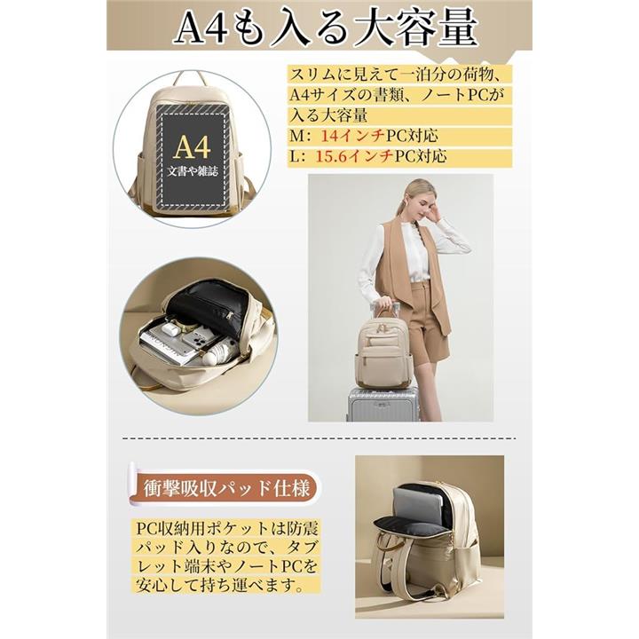 ビジネスリュック レディース PC パソコン収納 A4 14/15.6インチ対応 撥水・耐傷
