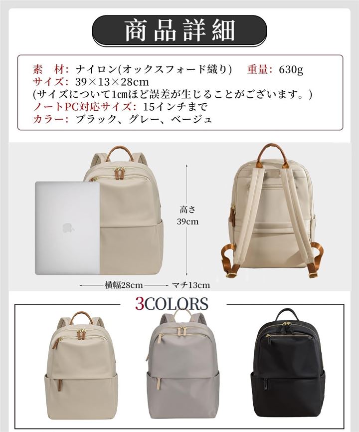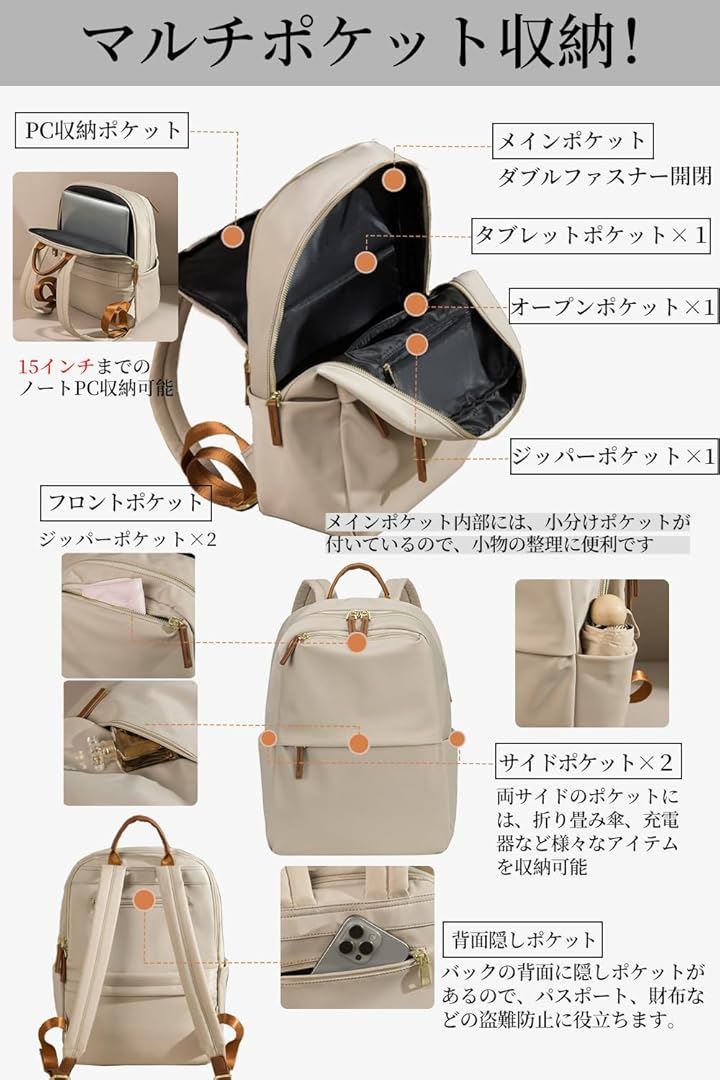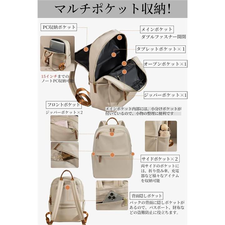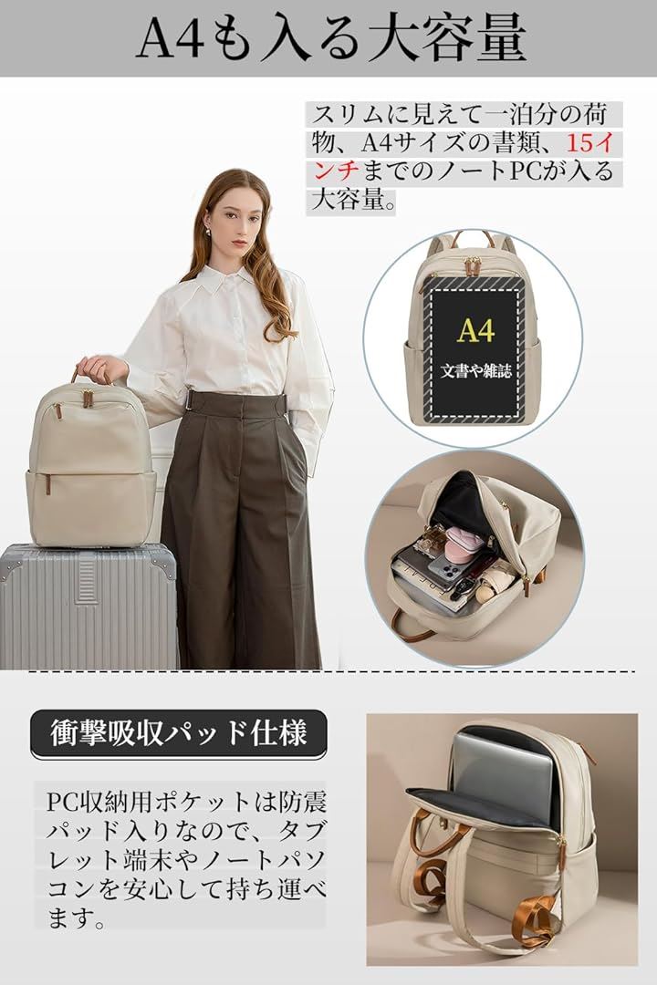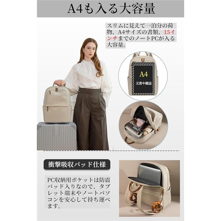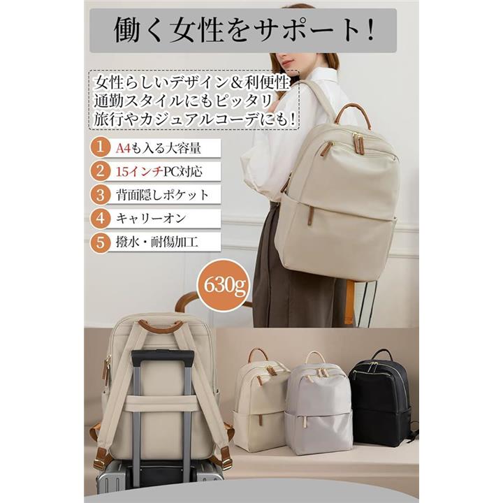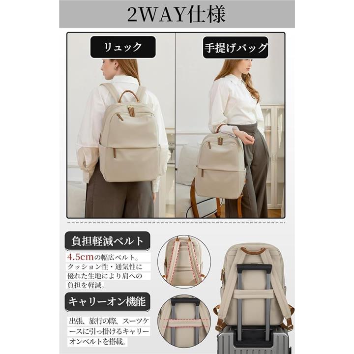 ビジネスリュック レディース パソコン PCバッグ キャリーオン機能 背面ポケット 撥水