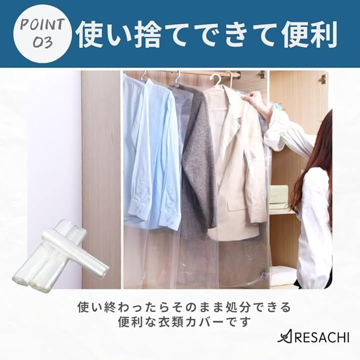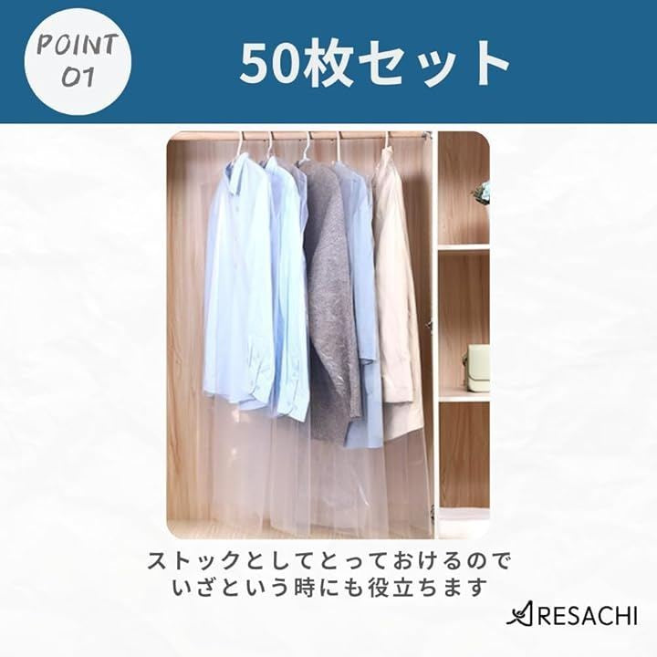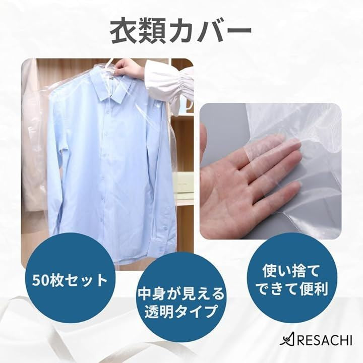 衣類カバー 洋服カバー 衣装カバー クリア 透明 使い捨て クリーニング 50枚セット