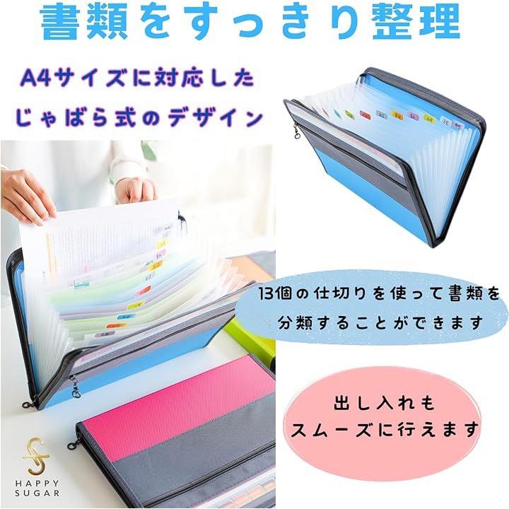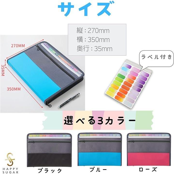 ドキュメントファイル a4 ドキュメントケース 書類整理 書類ケース 持ち運び 仕切りフォルダー ラベル付き 大容量
