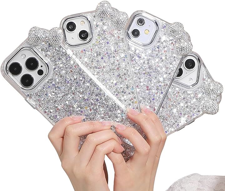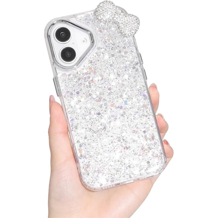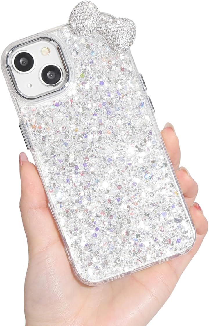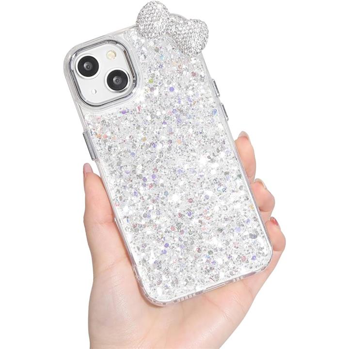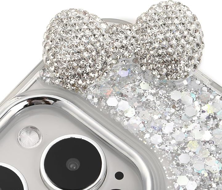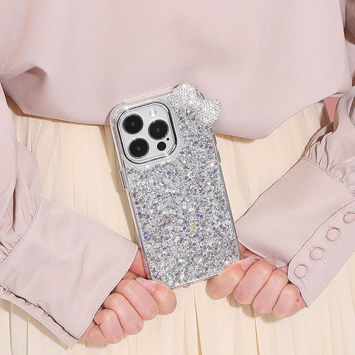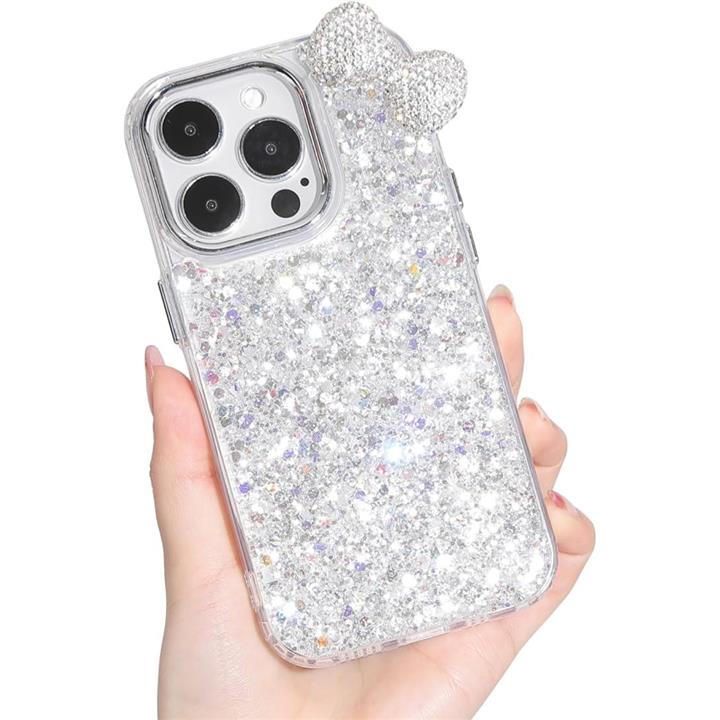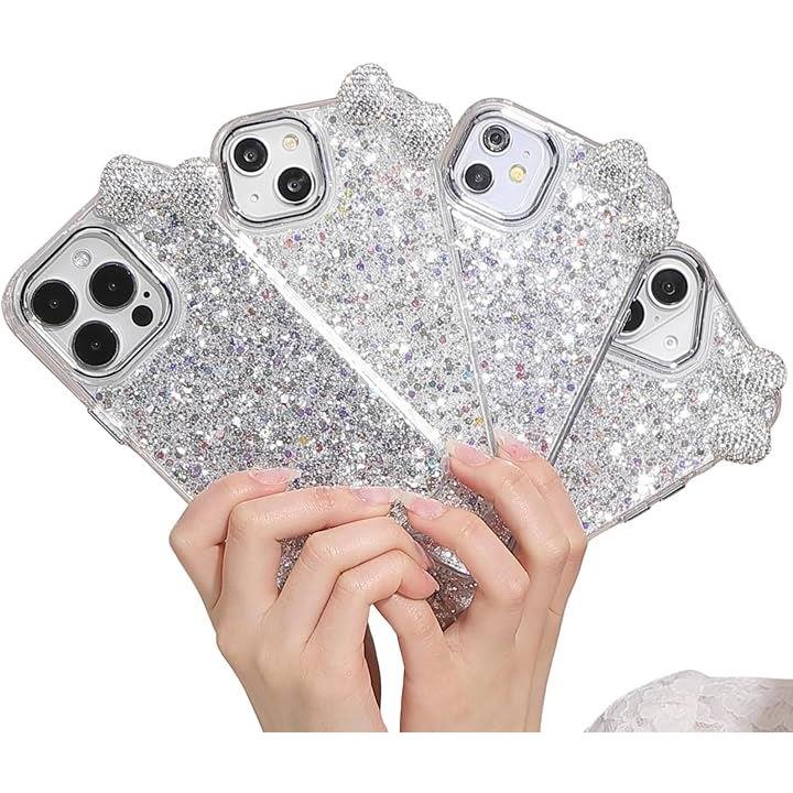 「ぎっしりラメx立体リボンのキラキラリボンケース」 ケース全体に大小さまざまなストーンとラメをびっしりと敷き詰め、角度を変えるたびにまばゆい輝きを放つラグジュアリーなデザイン。