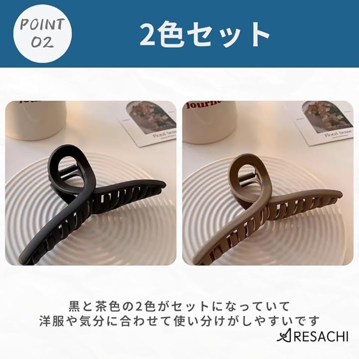 ヘアクリップ 大きめ 髪留め 髪クリップ しっかりとまる 2色セット