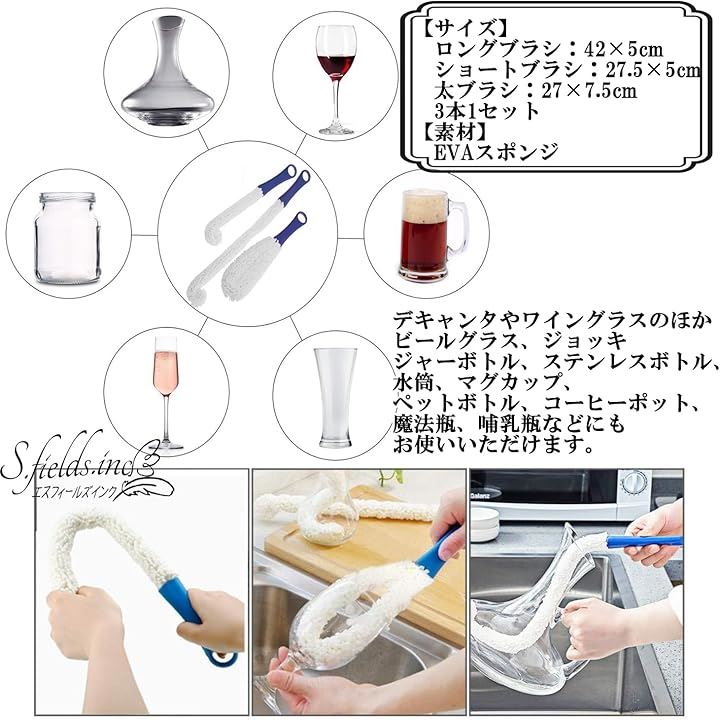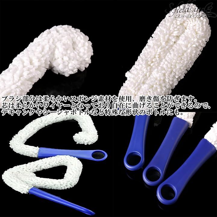 ボトルブラシ ロング スポンジ 3本セット 水筒洗い デキャンタ シーシャ ワイングラス洗浄