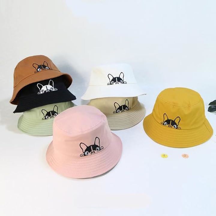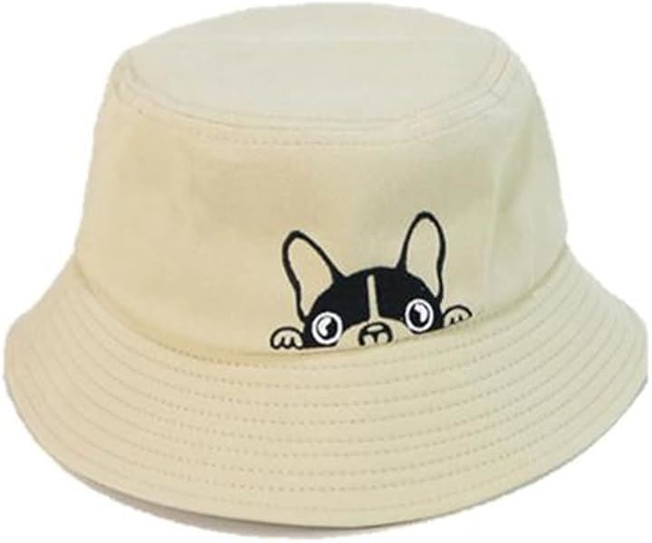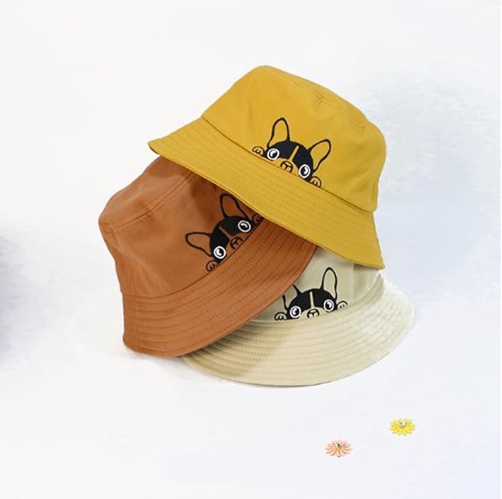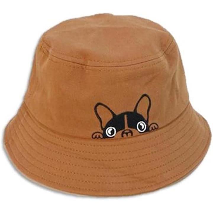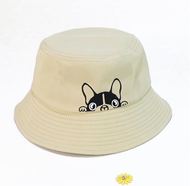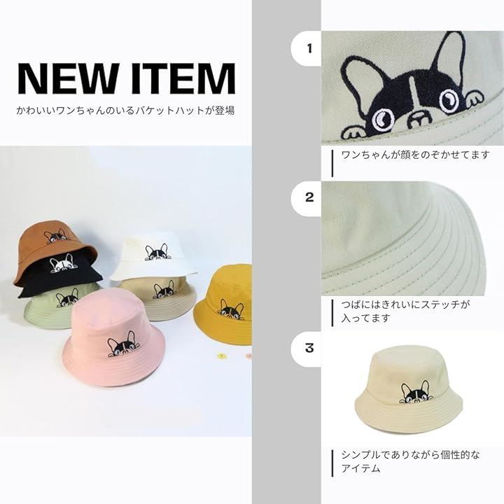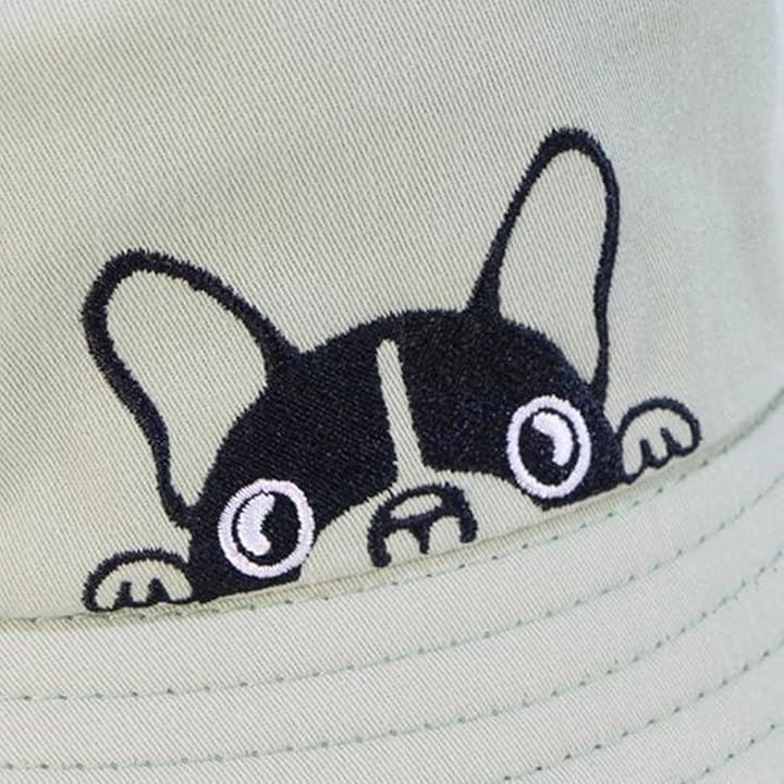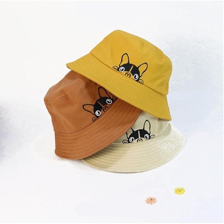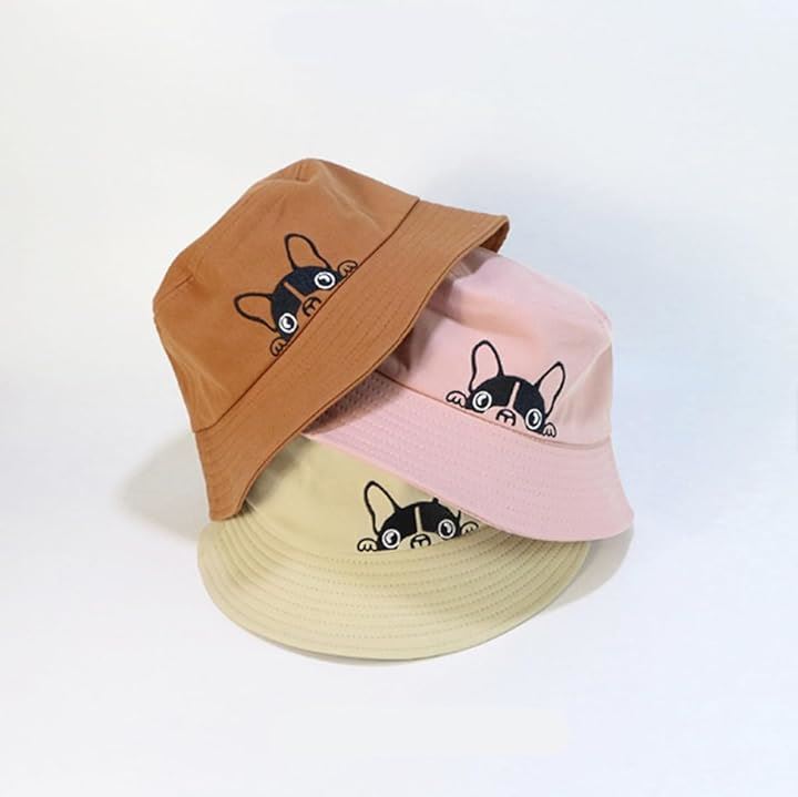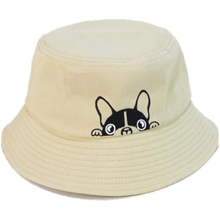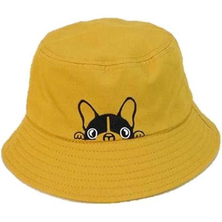 ひょっこり顔を出したフレンチブルがかわいい。 このバケットハットは、思わず笑顔になってしまうユニークなデザインが魅力。