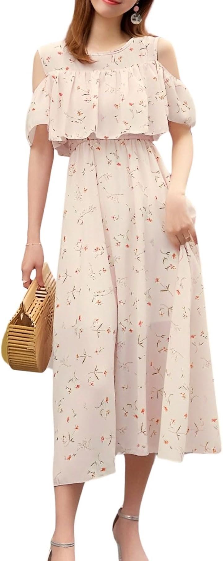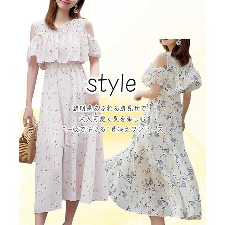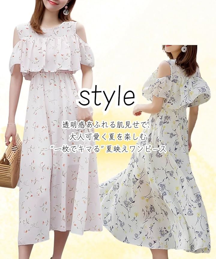[Four leaf] 花柄ワンピース リゾートワンピース レディース 夏 可愛い 肩出し ワンピース きれいめ ロング カジュアル 大きいサイズ 半袖 リゾート 夏服 aライン ミモレ丈 上品 サマー ドレス エレガント ゆったり 旅行 |