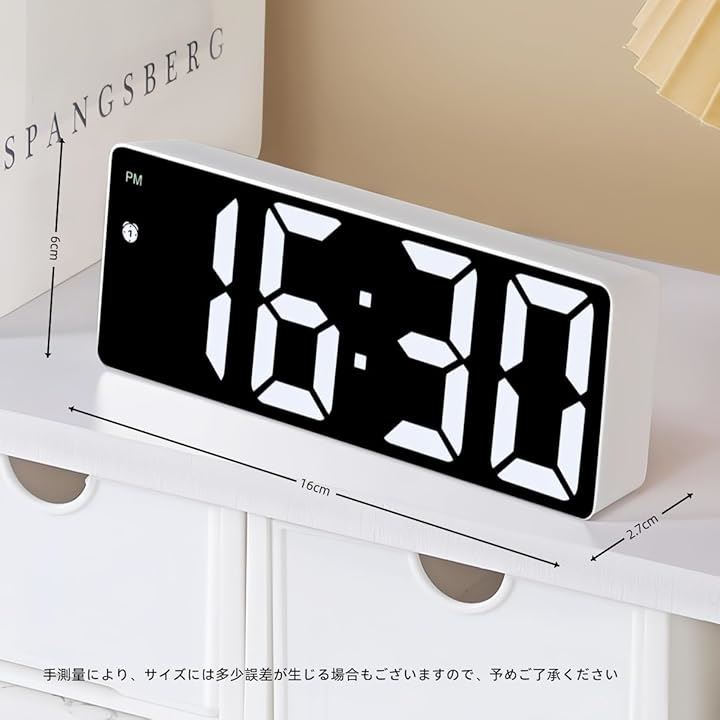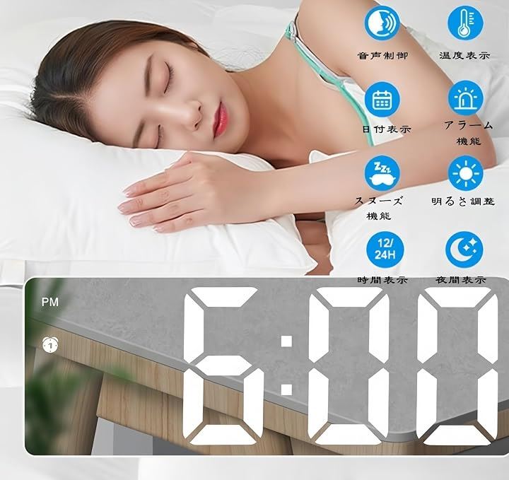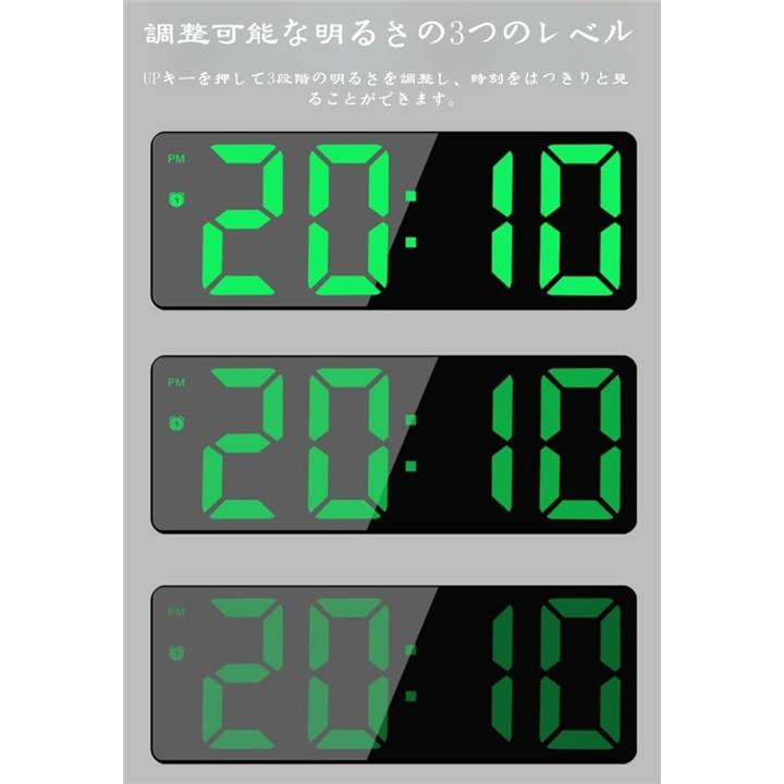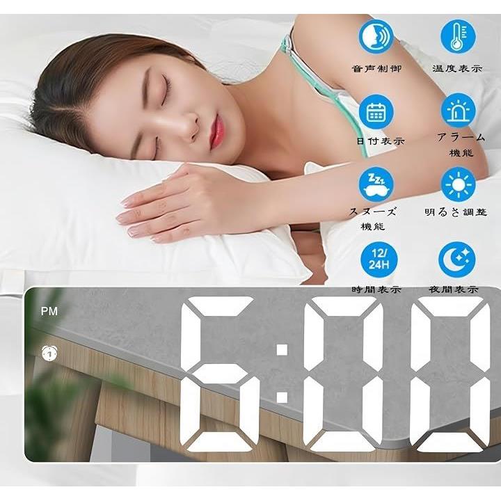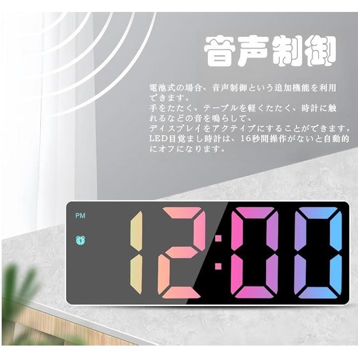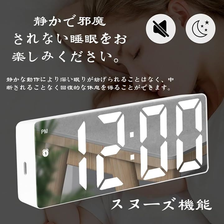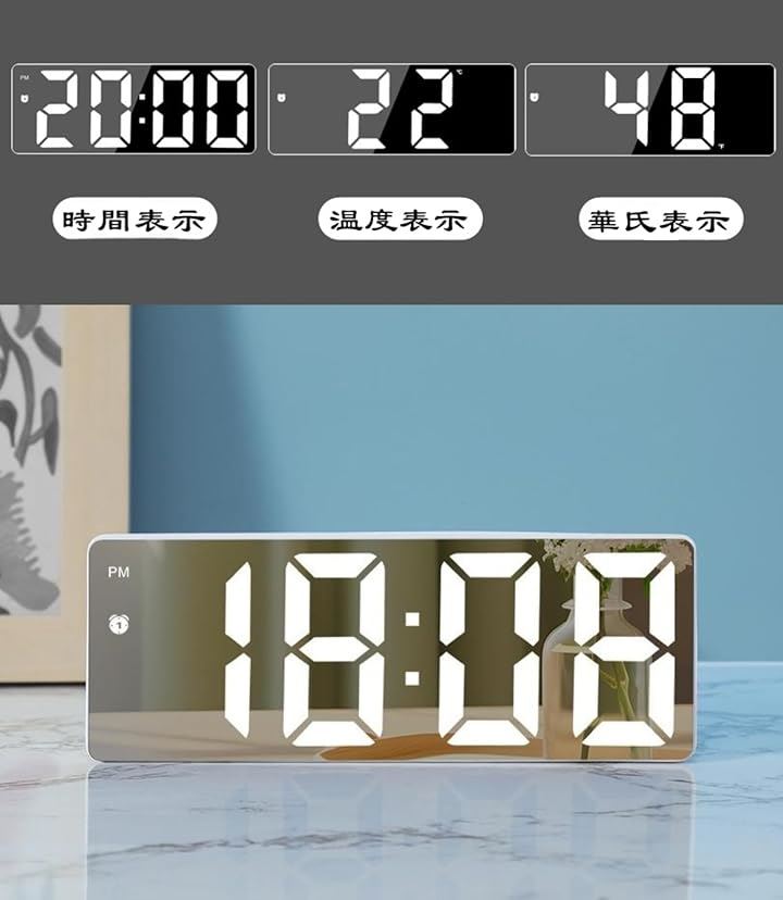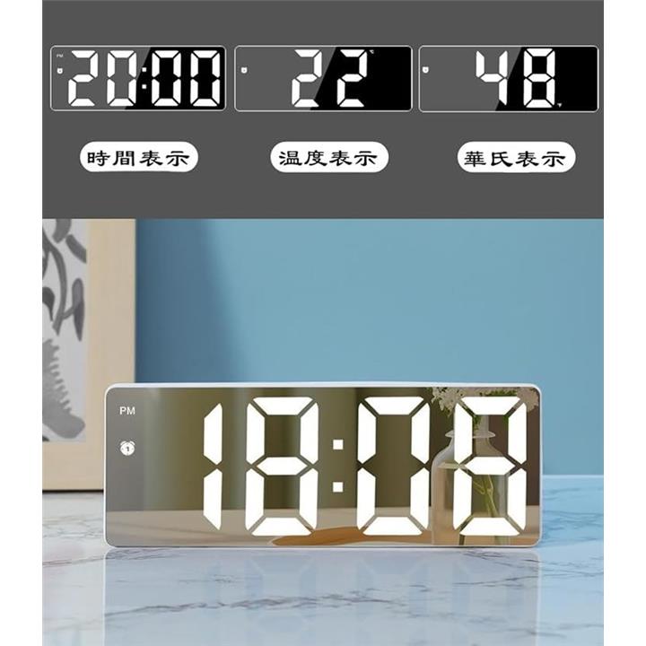 明るいLEDミラー 目覚まし時計 大音量 デジタル時計 ミラー電子 卓上 置き時計 絶対起きれる おしゃれ 静音 温度機能 カレンダー表示 大画面 アラーム 電池式 USB給電 乾電池給電 明るさ調節可 調光可能 スヌーズ機能付き