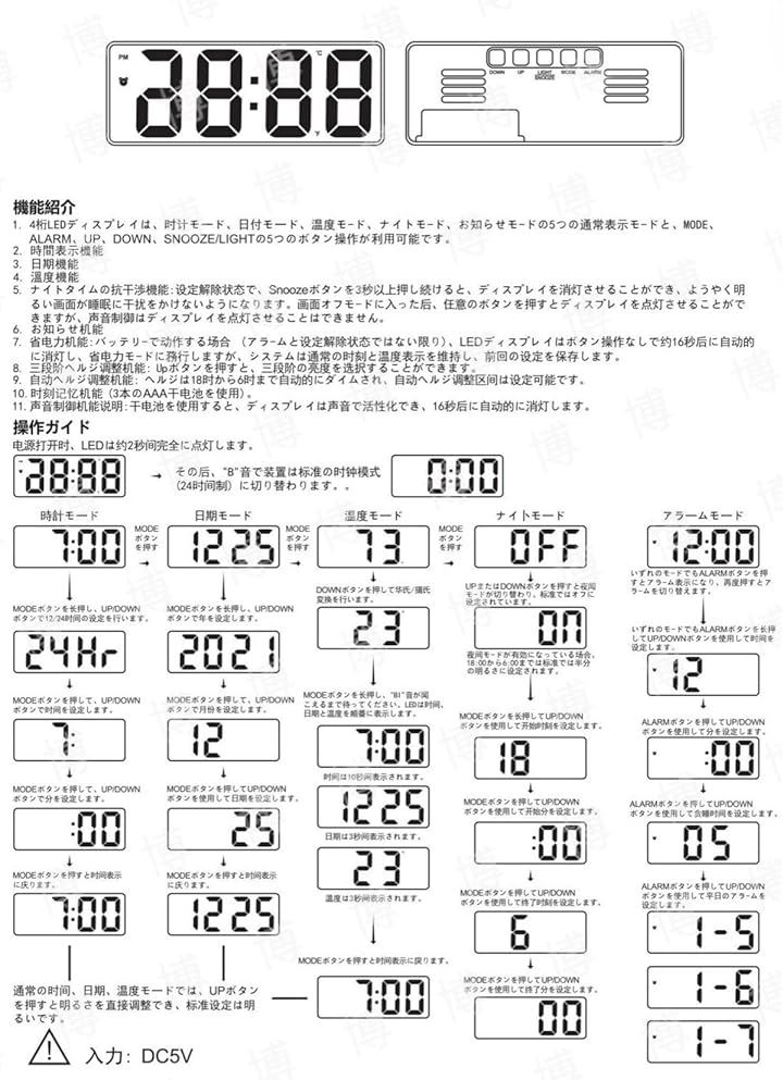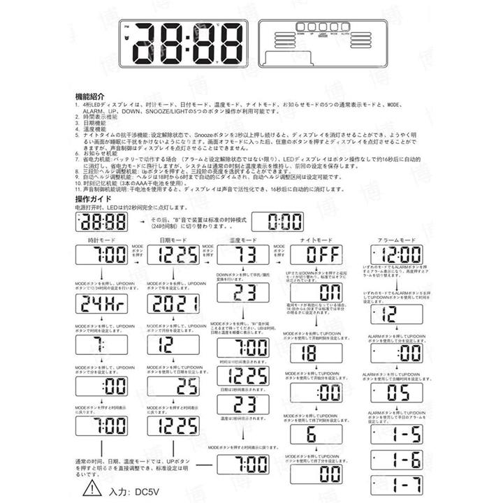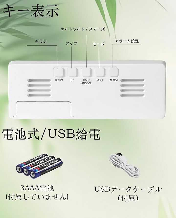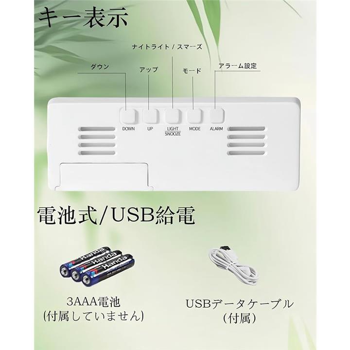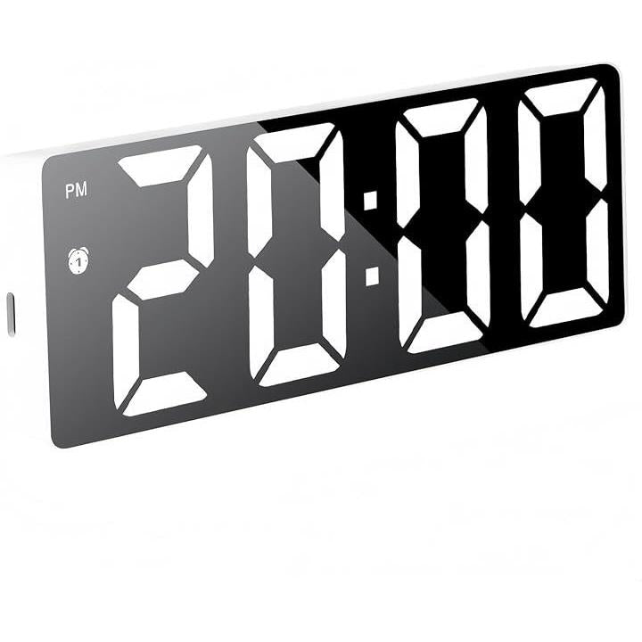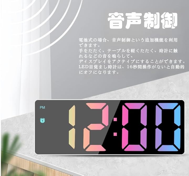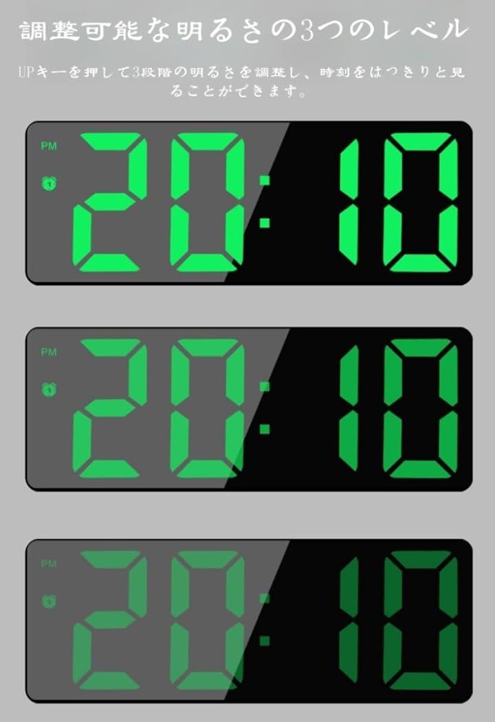 明るいLEDミラー 目覚まし時計 大音量 デジタル時計 ミラー電子 卓上 置き時計 絶対起きれる おしゃれ 静音 温度機能 カレンダー表示 大画面 アラーム 電池式 USB給電 乾電池給電 明るさ調節可 調光可能 スヌーズ機能付き