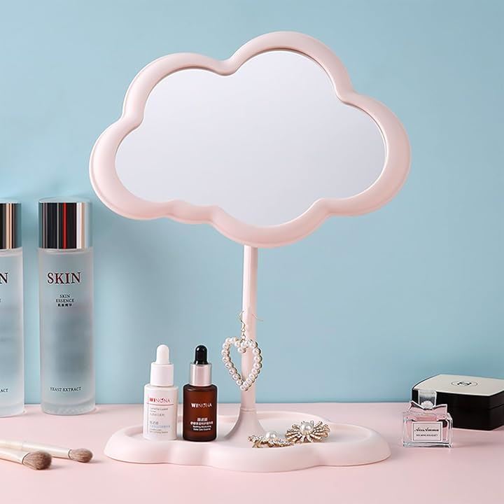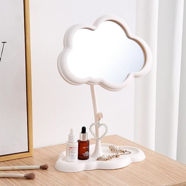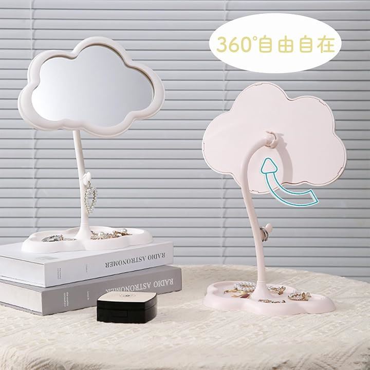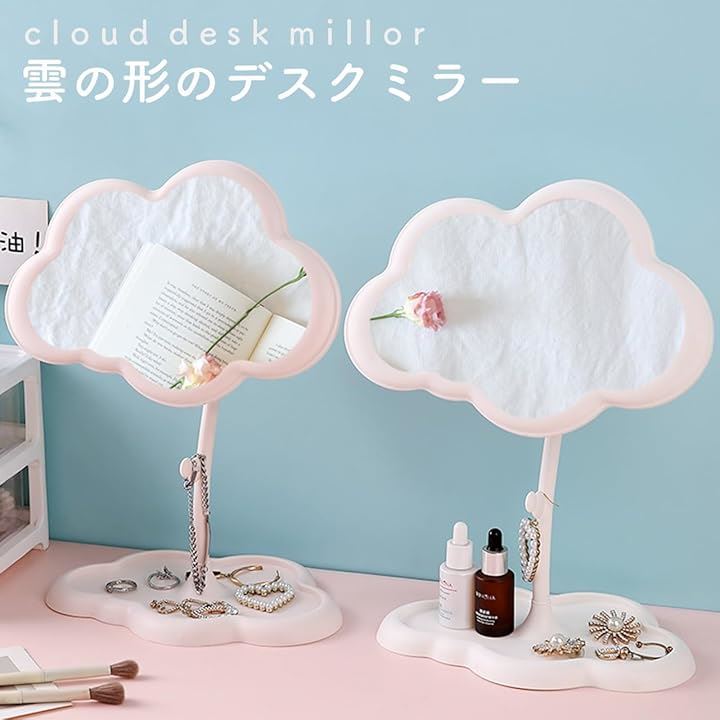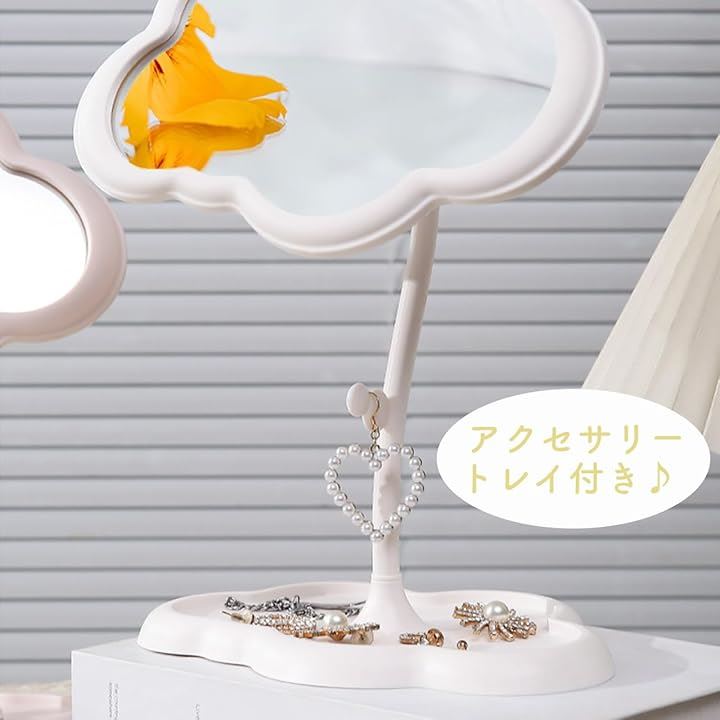 ミラー 卓上 雲の形 可愛い トレイ付き おしゃれ 鏡 360°角度調整 メイク 化粧 デスクトップ インテリア 装飾 小物置き 机 女の子