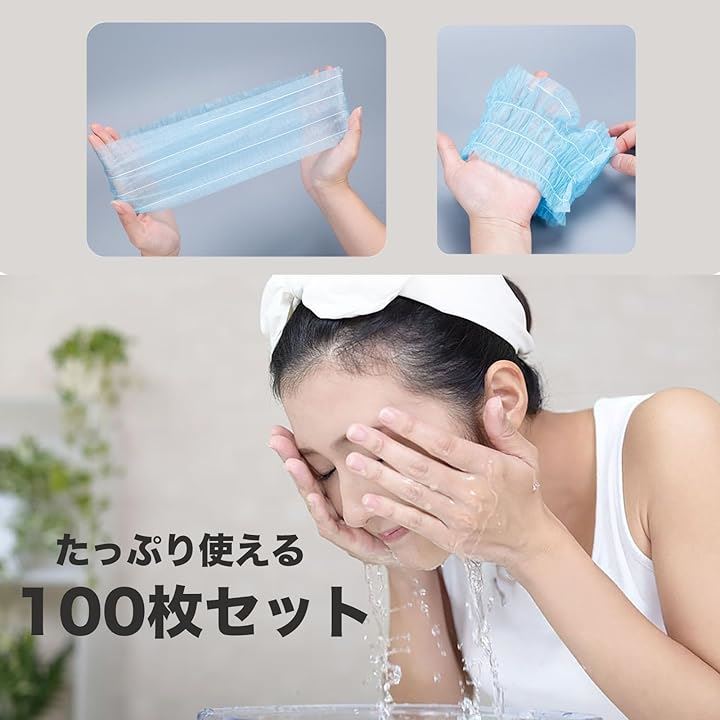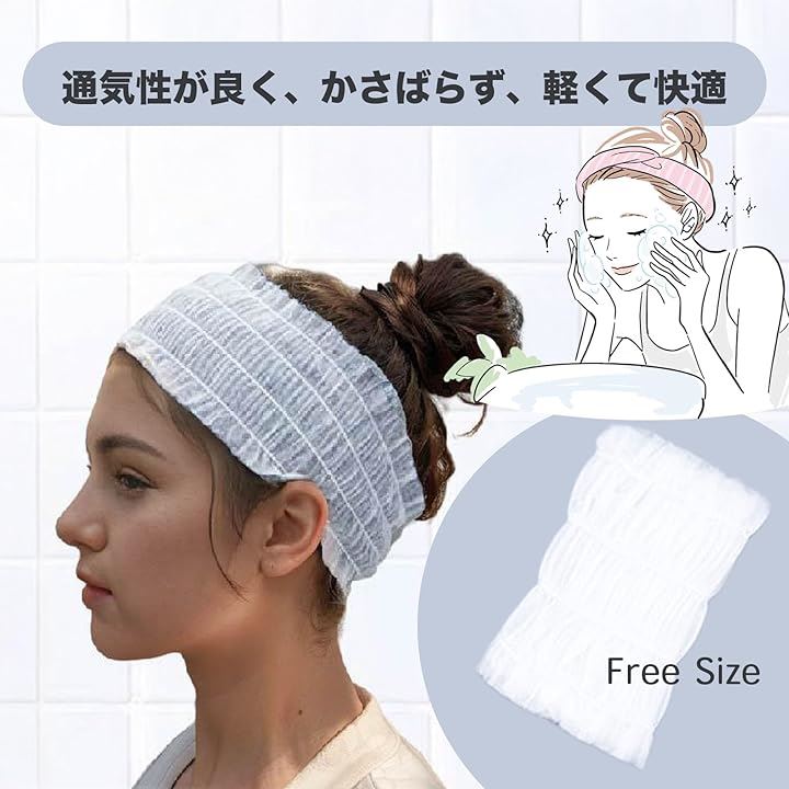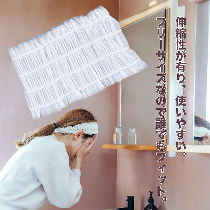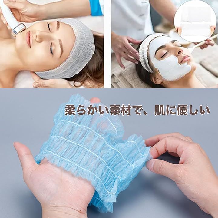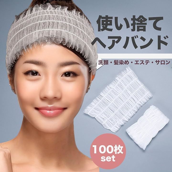 ジーティアモ ヘアバンド 使い捨て 個包装 ヘアキャップ 100枚 ヘアターバン ヘッドバンド 不織布 洗顔 化粧 大容量