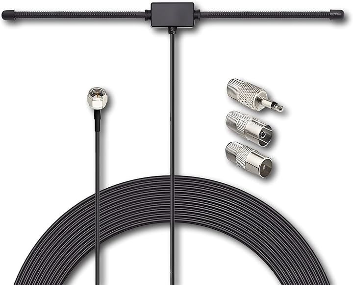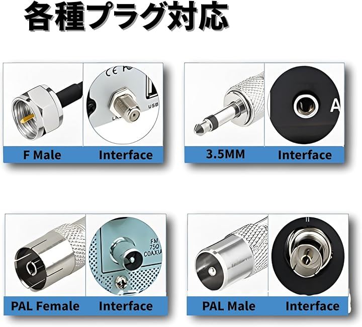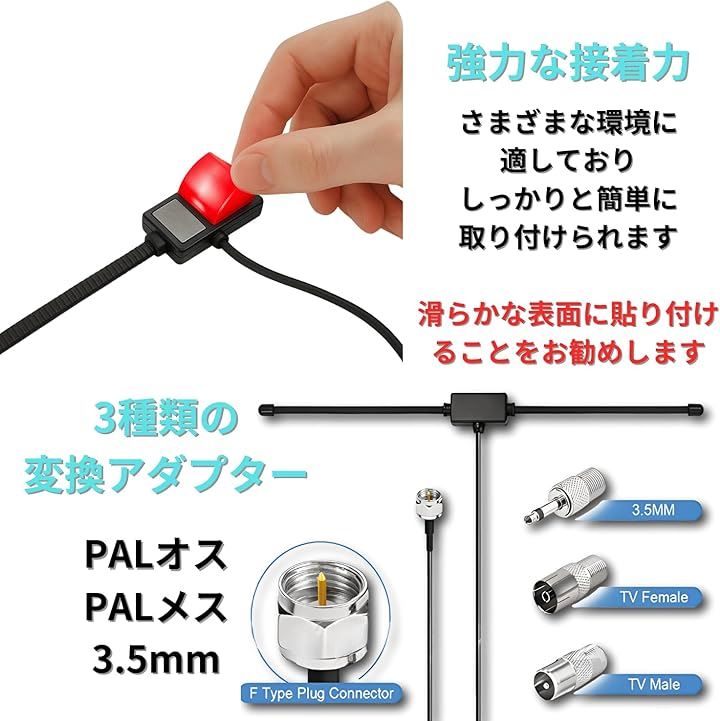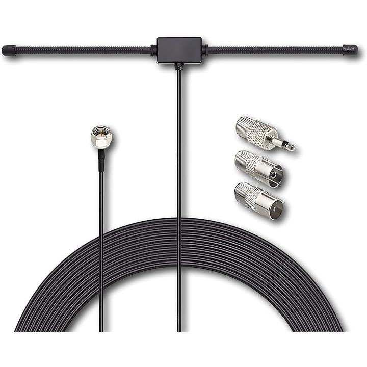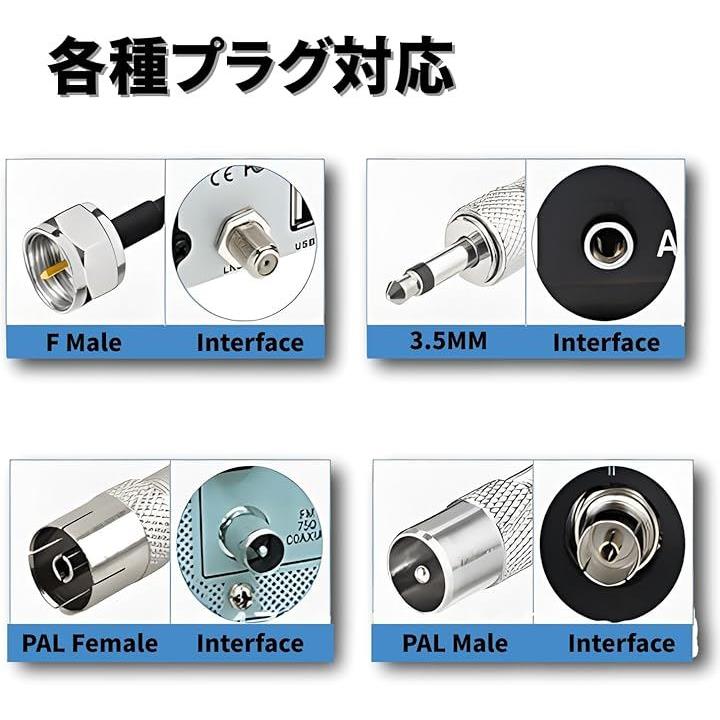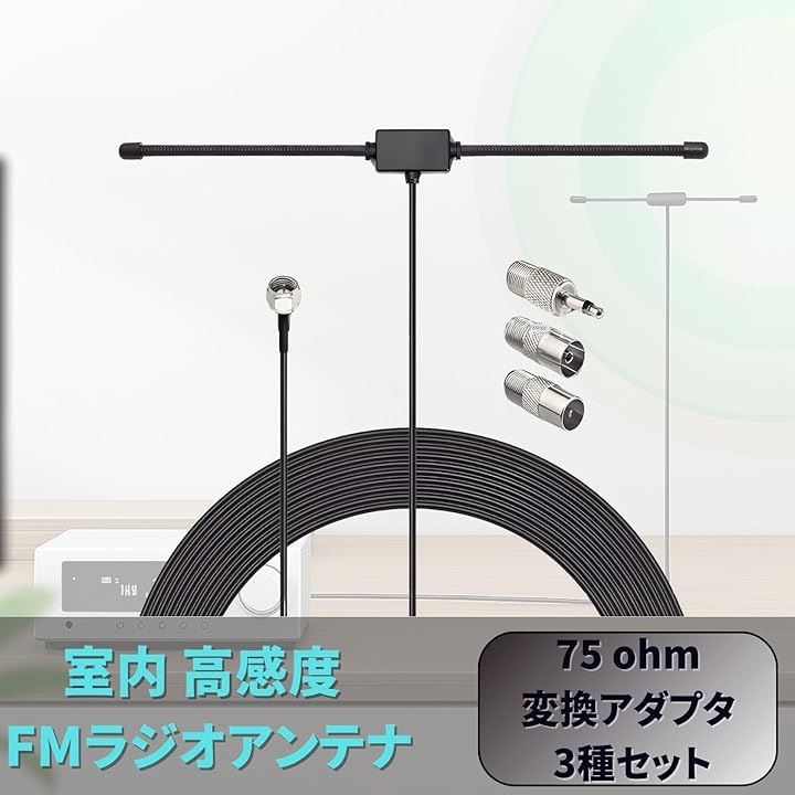 互換品 FMアンテナ 室内 高感度 75ohm 80-1700MHz 変換アダプタ付