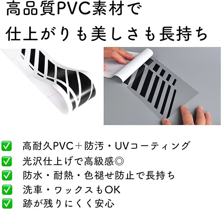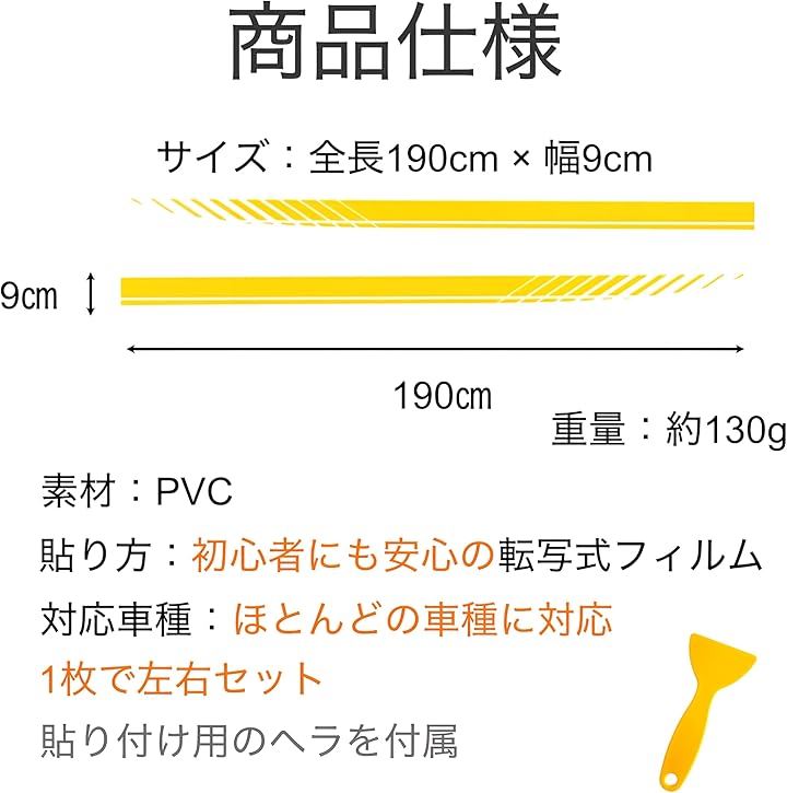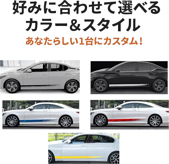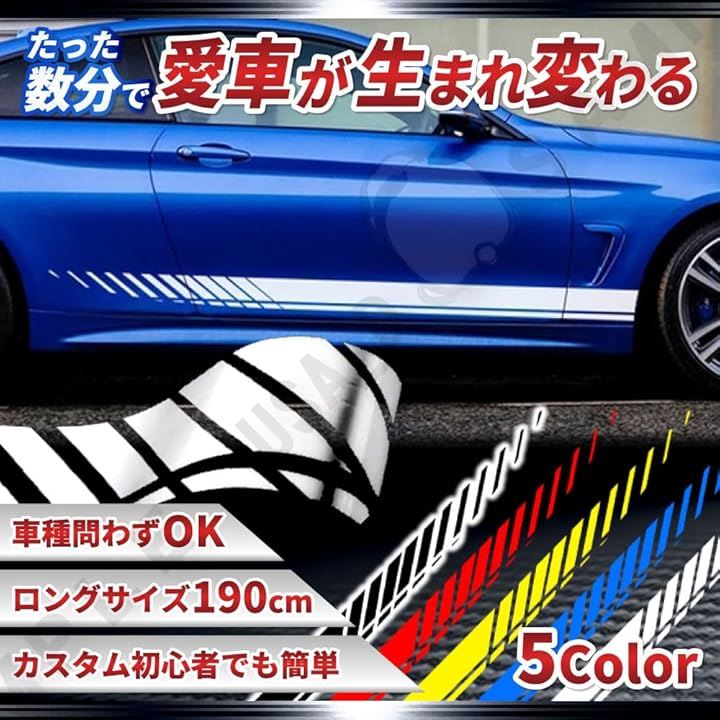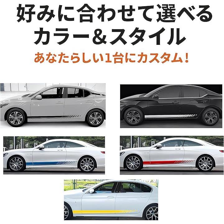サイドストライプ ステッカー 車用 カーデカール 190cm PVC素材 左右セット 5色展開 貼るだけ 簡単 ドレスアップ 汎用 カスタム